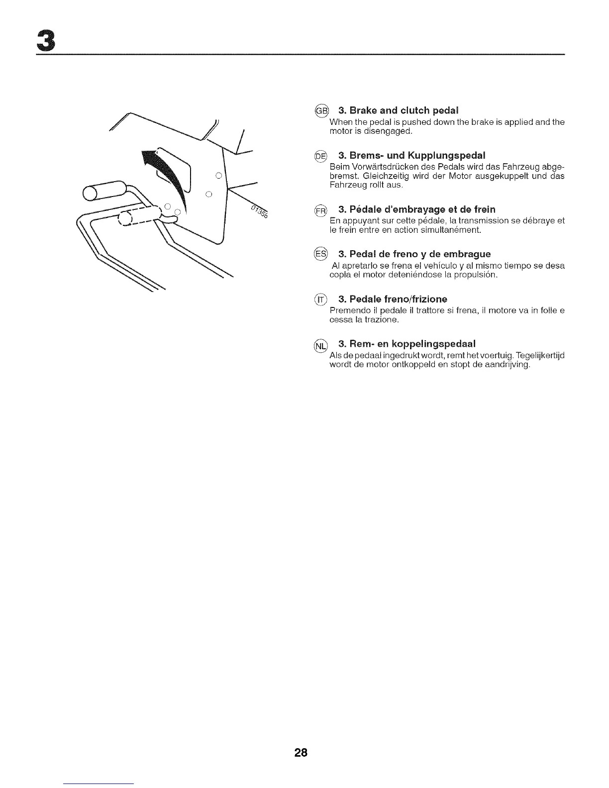 Premendo il pedale il trattore si frena, il motore va in folle e