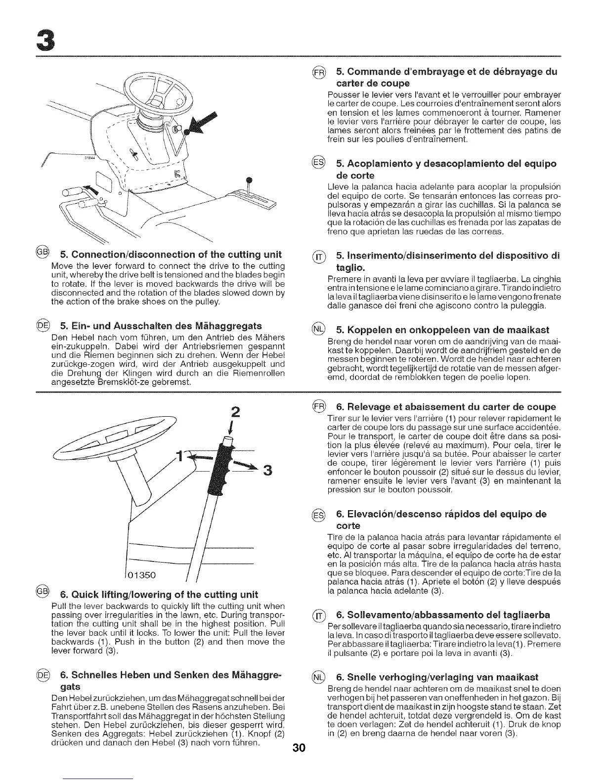 la leva. In caso di trasporto iltagliaerba deve essere sollevato.