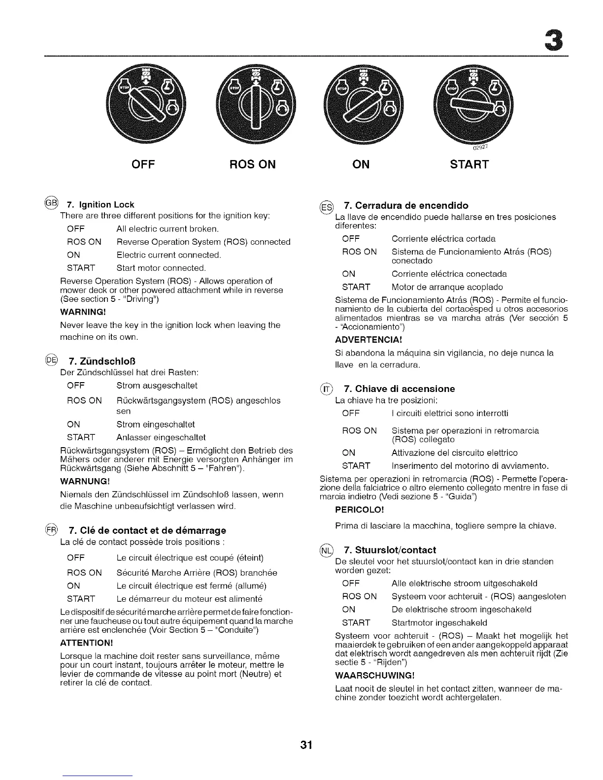 RQckwArtsgang (Siehe Abschnitt 5 - "Fahren").