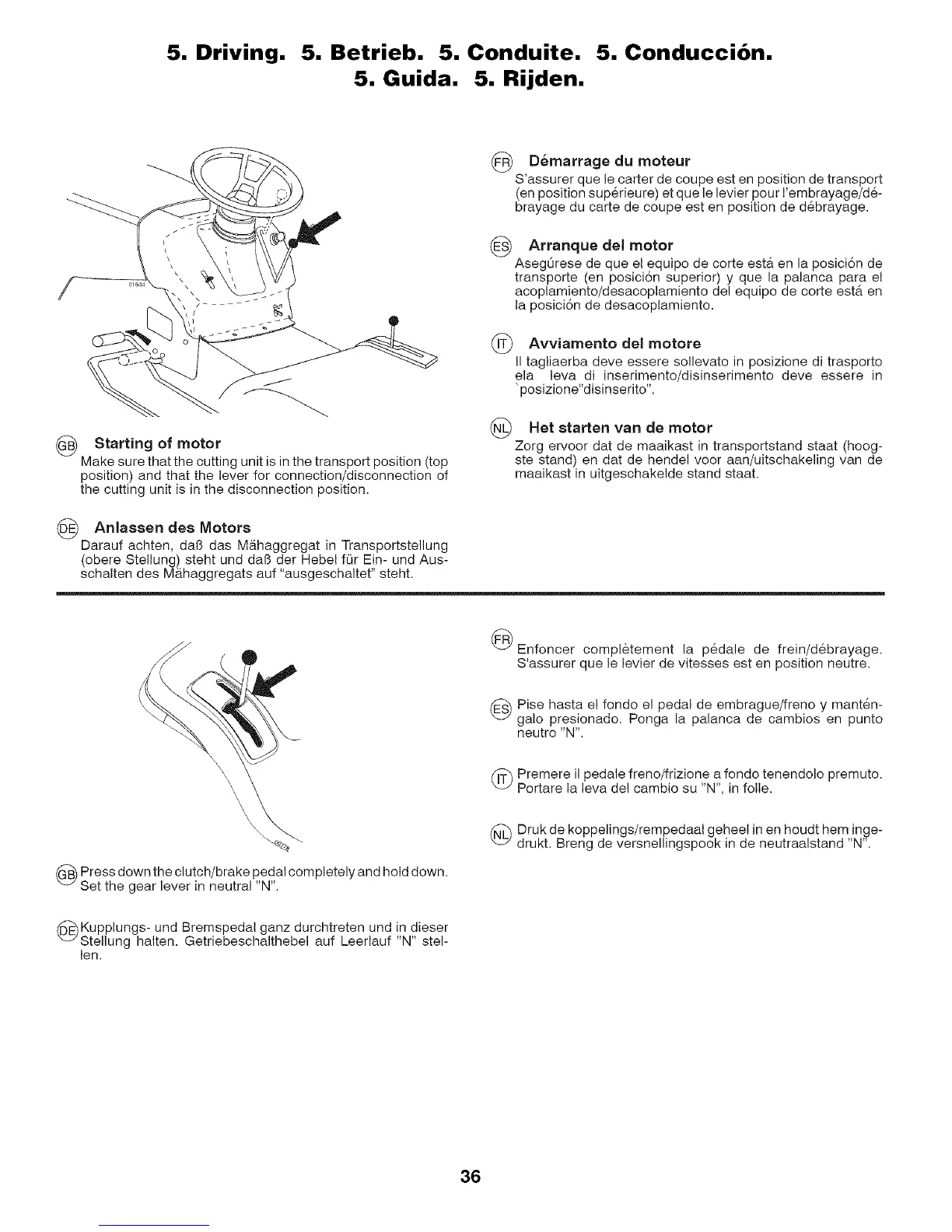 5. Driving. 5. Betrieb. 5. Conduite. 5. Conducci6n.