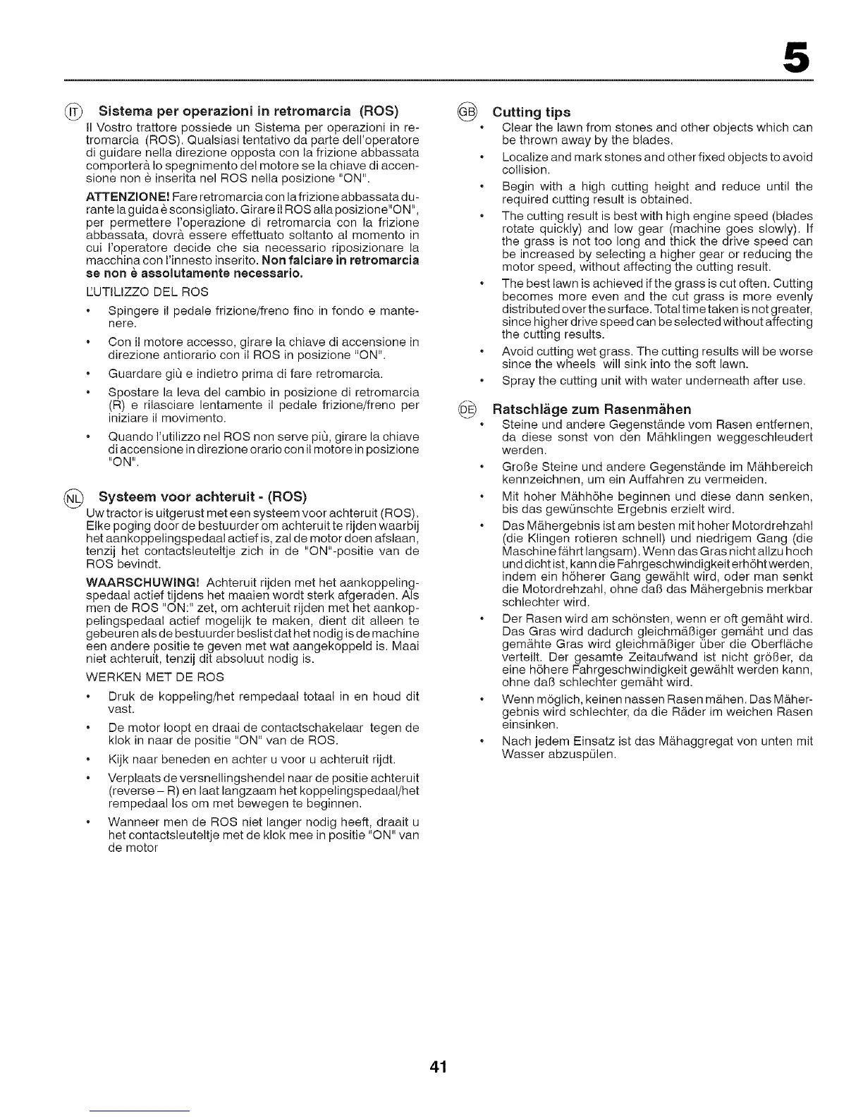 macchina con I'innesto inserito. Non falciare in retromarcia