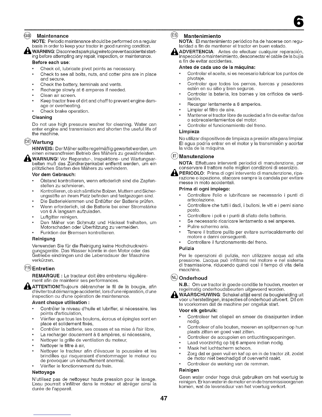 REMARQUE : Le tracteur dolt &tre entretenu r6guliere-