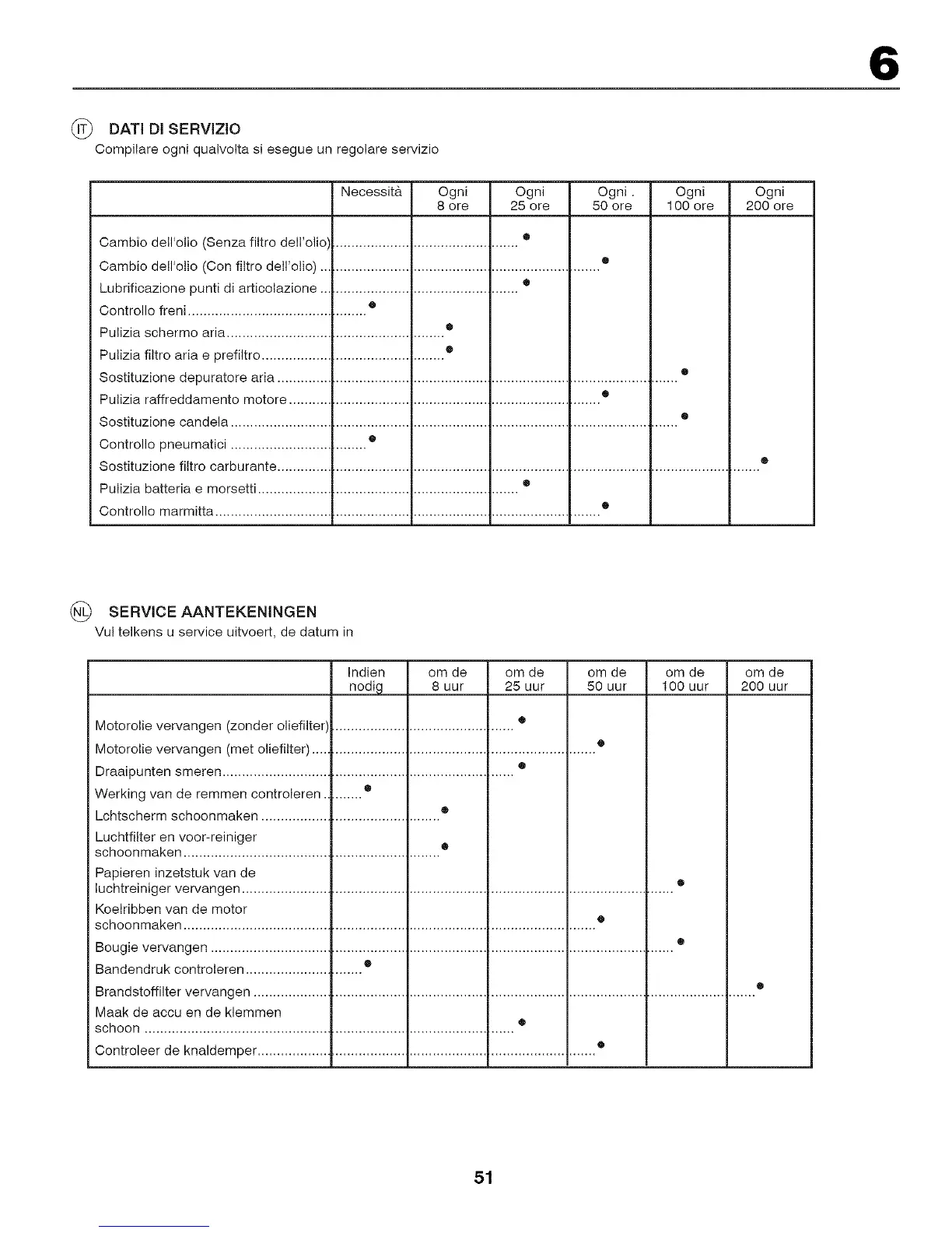 Cambio dell'olio (Senza filtro dell'olio ................................................ •