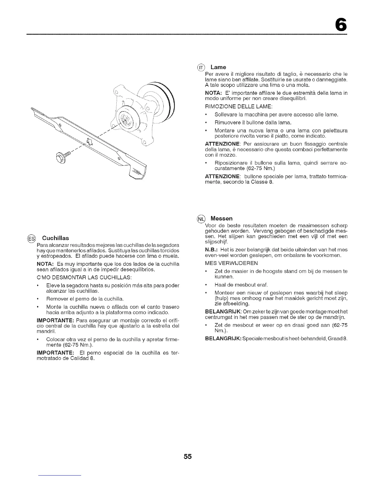 IMPORTANTE: El perno especial de la cuchilla es ter-
