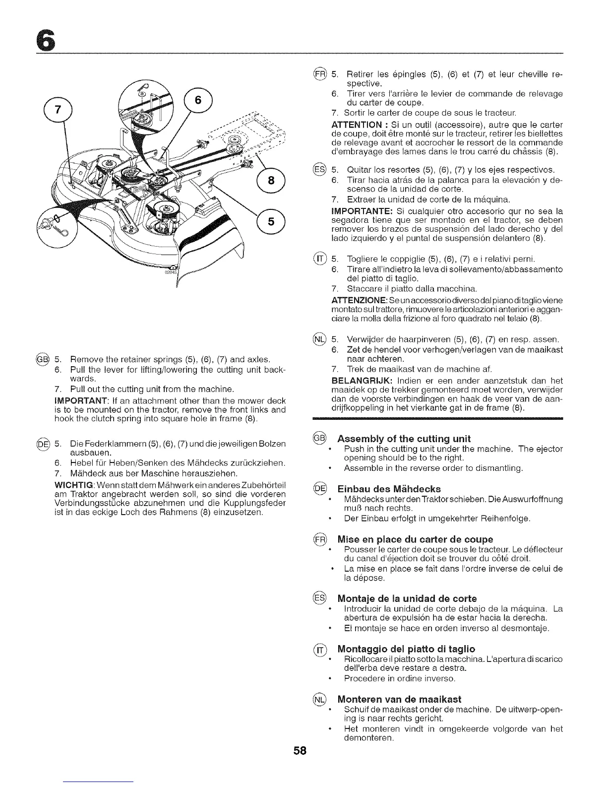 IMPORTANT: if an attachment other than the mower deck