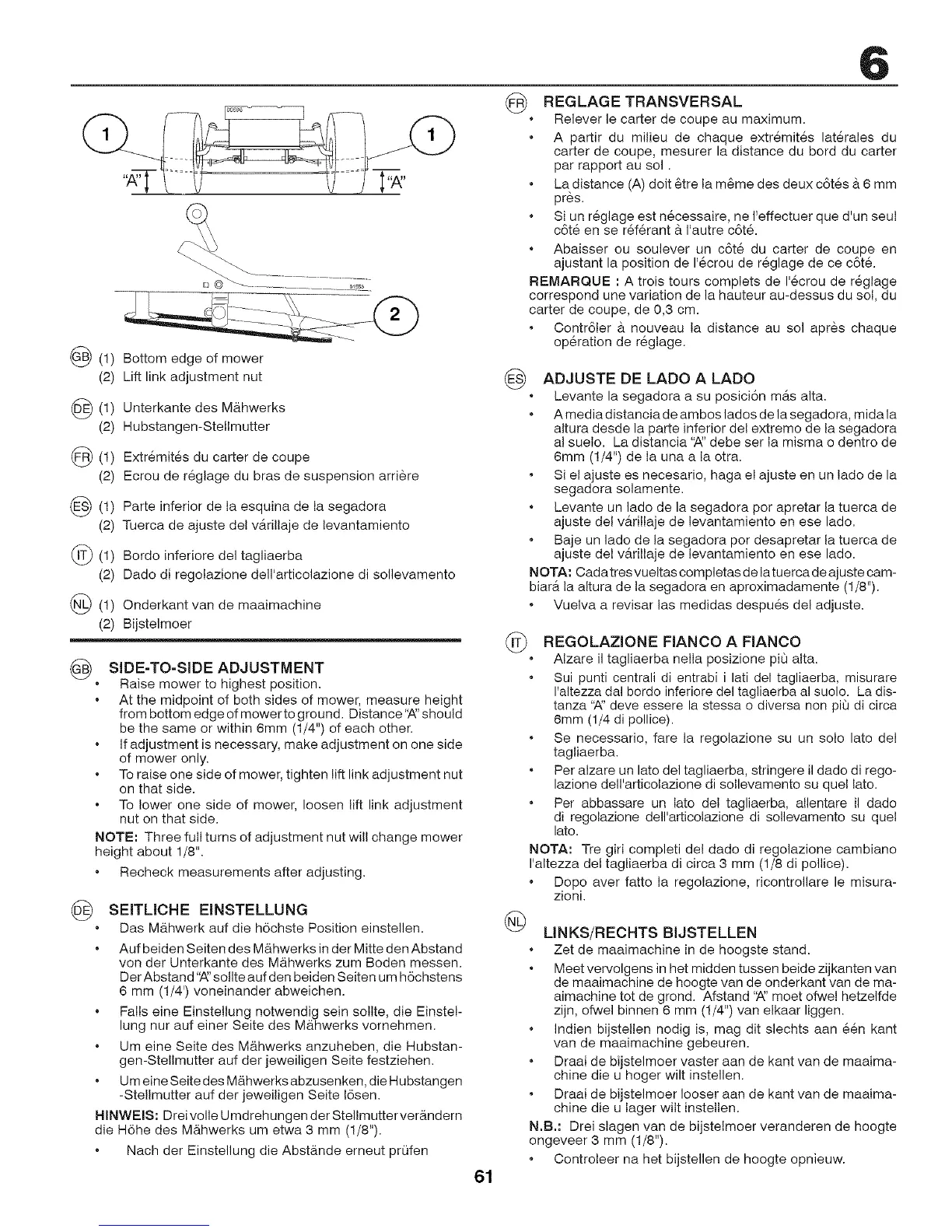 Sui punti centrali di entrabi i lati del tagliaerba, misurare