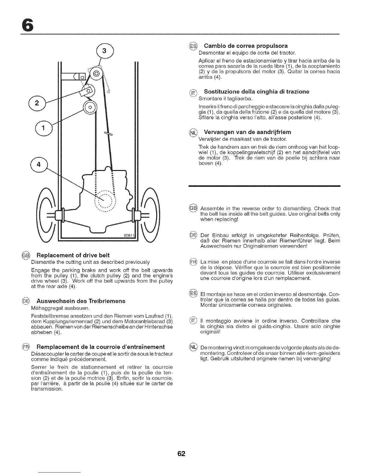 sion (2) et de la poulie motrice (3). Enfin, sortir la courroie,
