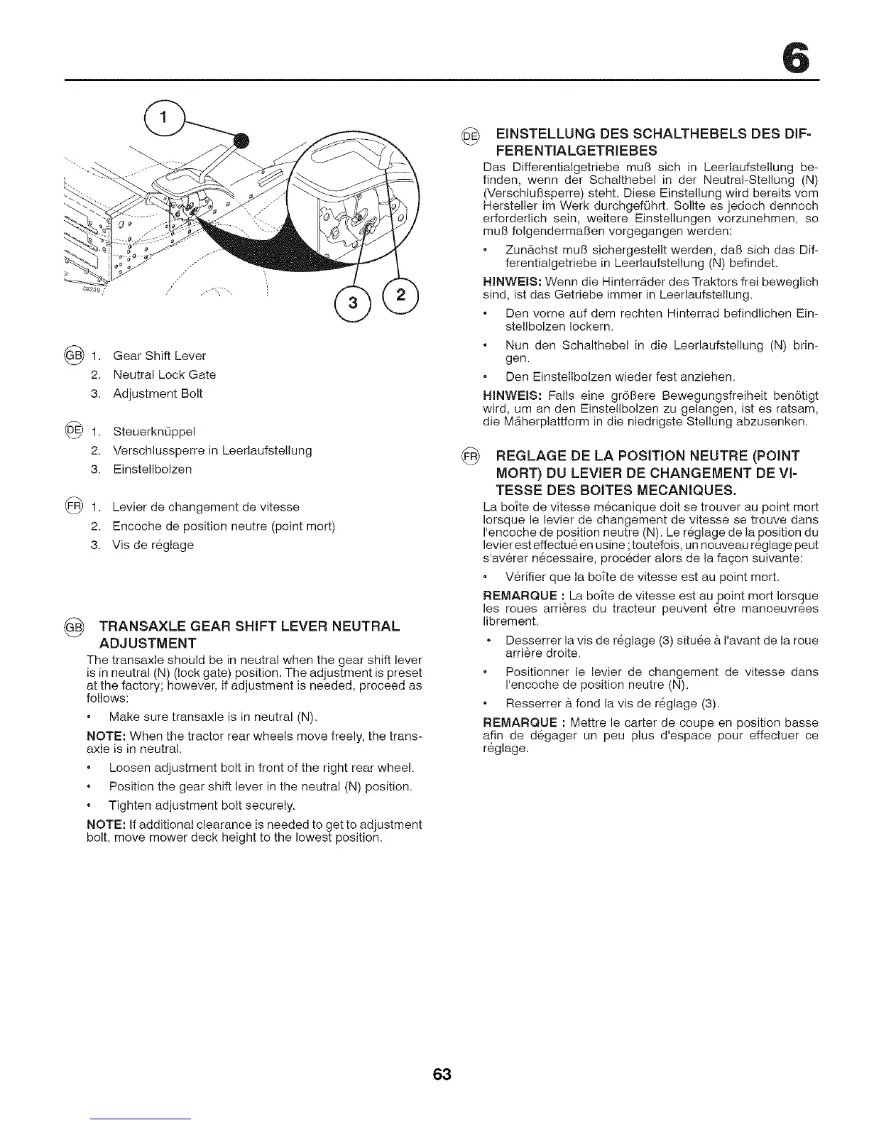 TRANSAXLE GEAR SHIFT LEVER NEUTRAL