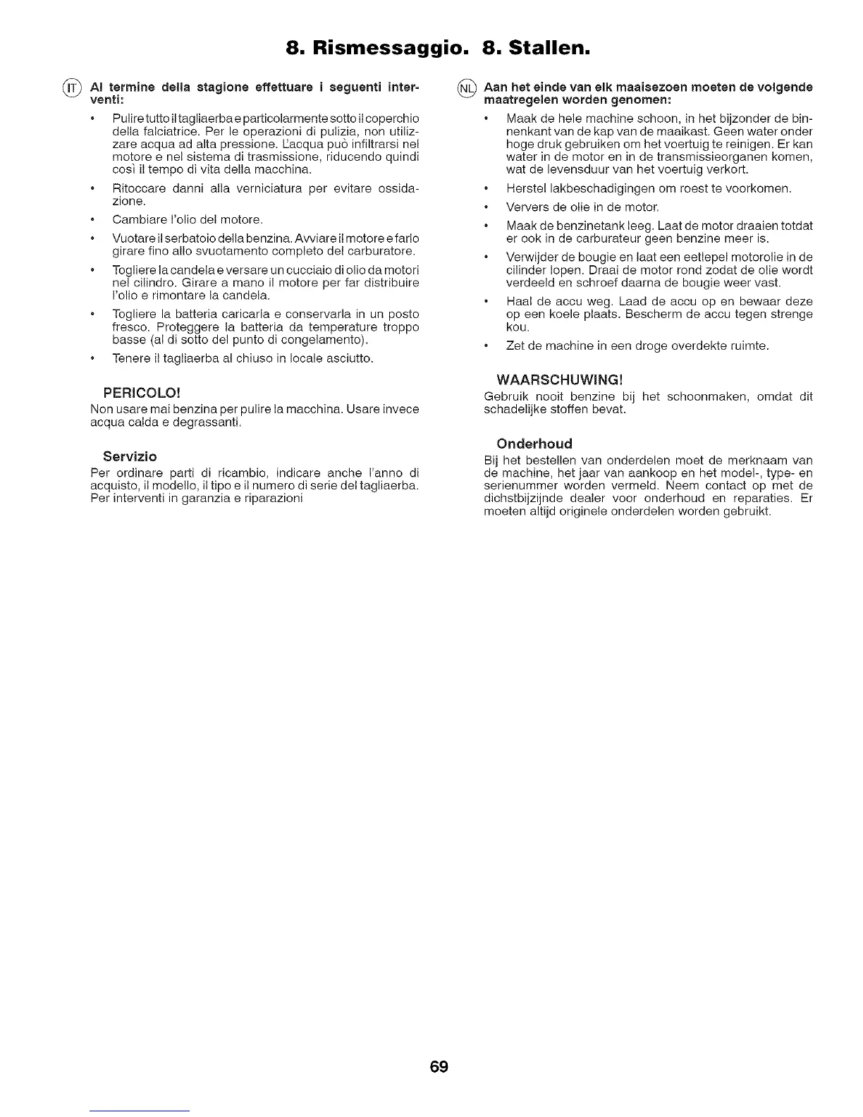 Tenere il tagliaerba al chiuso in locale asciutto.