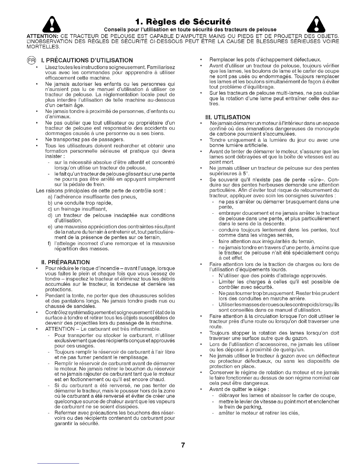 Conseils pour I'utilisation en toute s_curite des tracteurs de pelouse