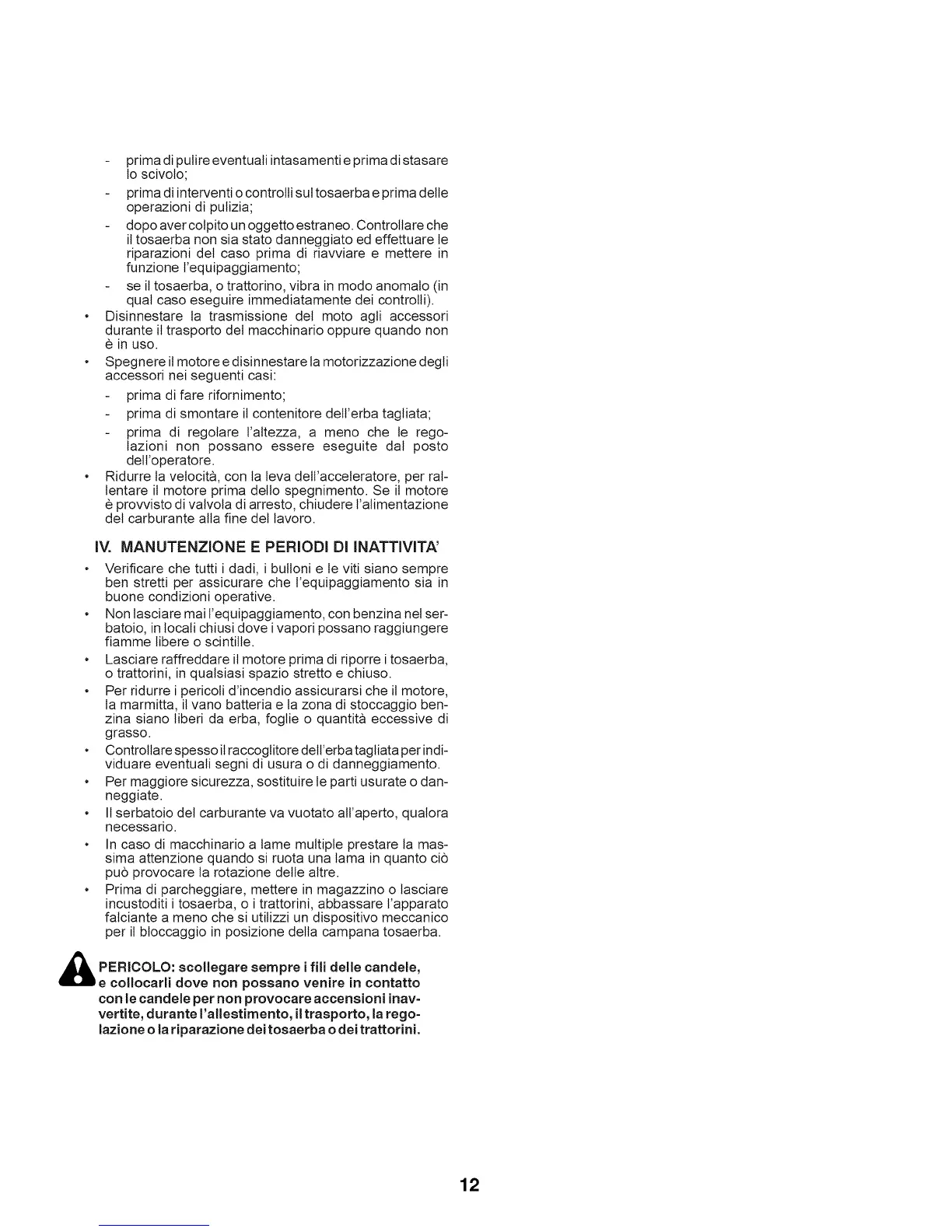 • Per ridurre i pericoli d'incendio assicurarsi che it motore,
