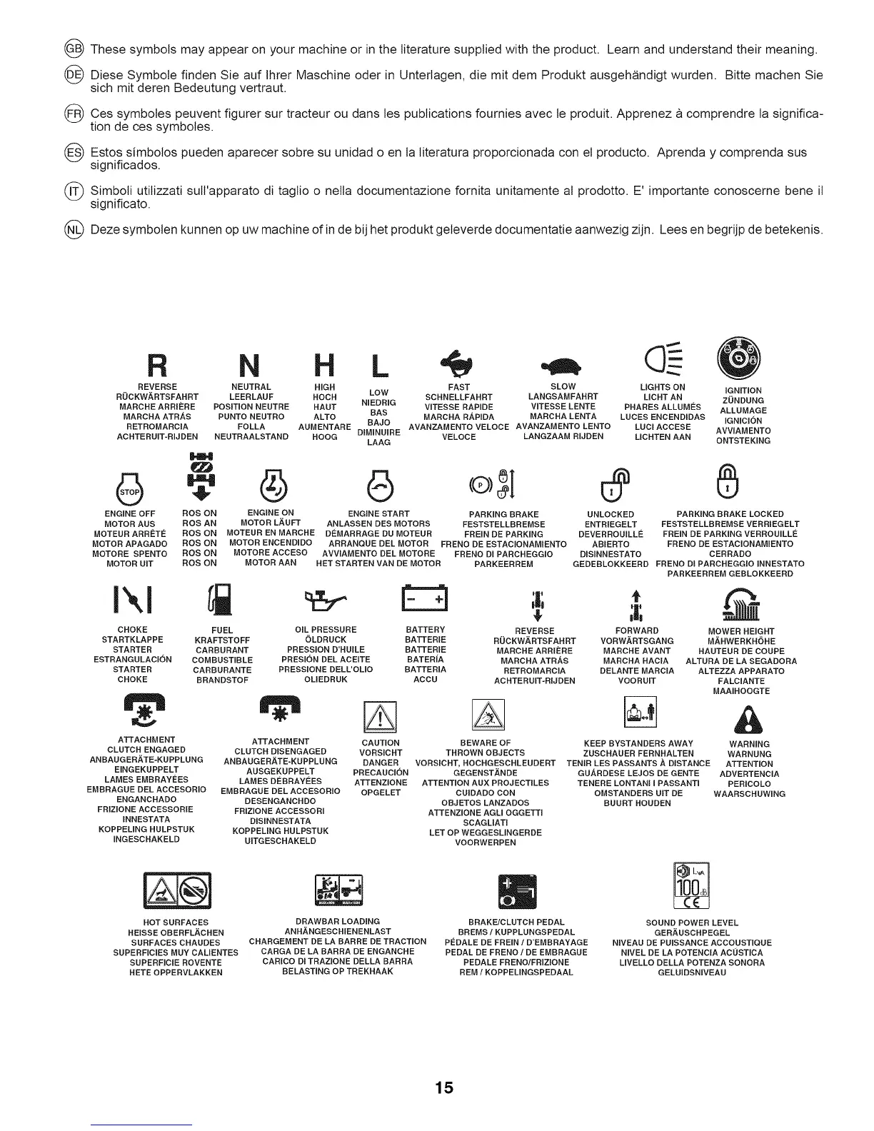 (_Ces symboles peuvent figurer sur tracteur ou dans les publications foumies avec le produit. Apprenez a comprendre la significa-
