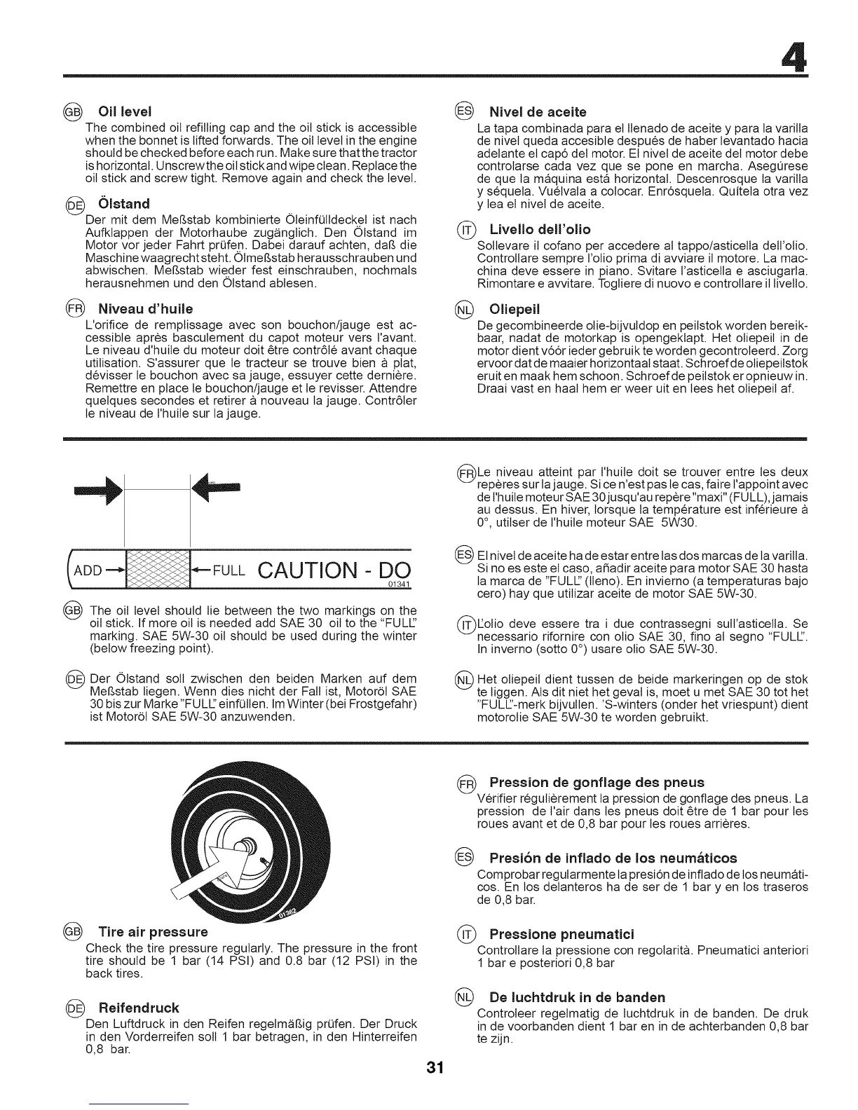 de t'huile moteur SAE 30jusqu'au repere "maxi" (FULL), jamais