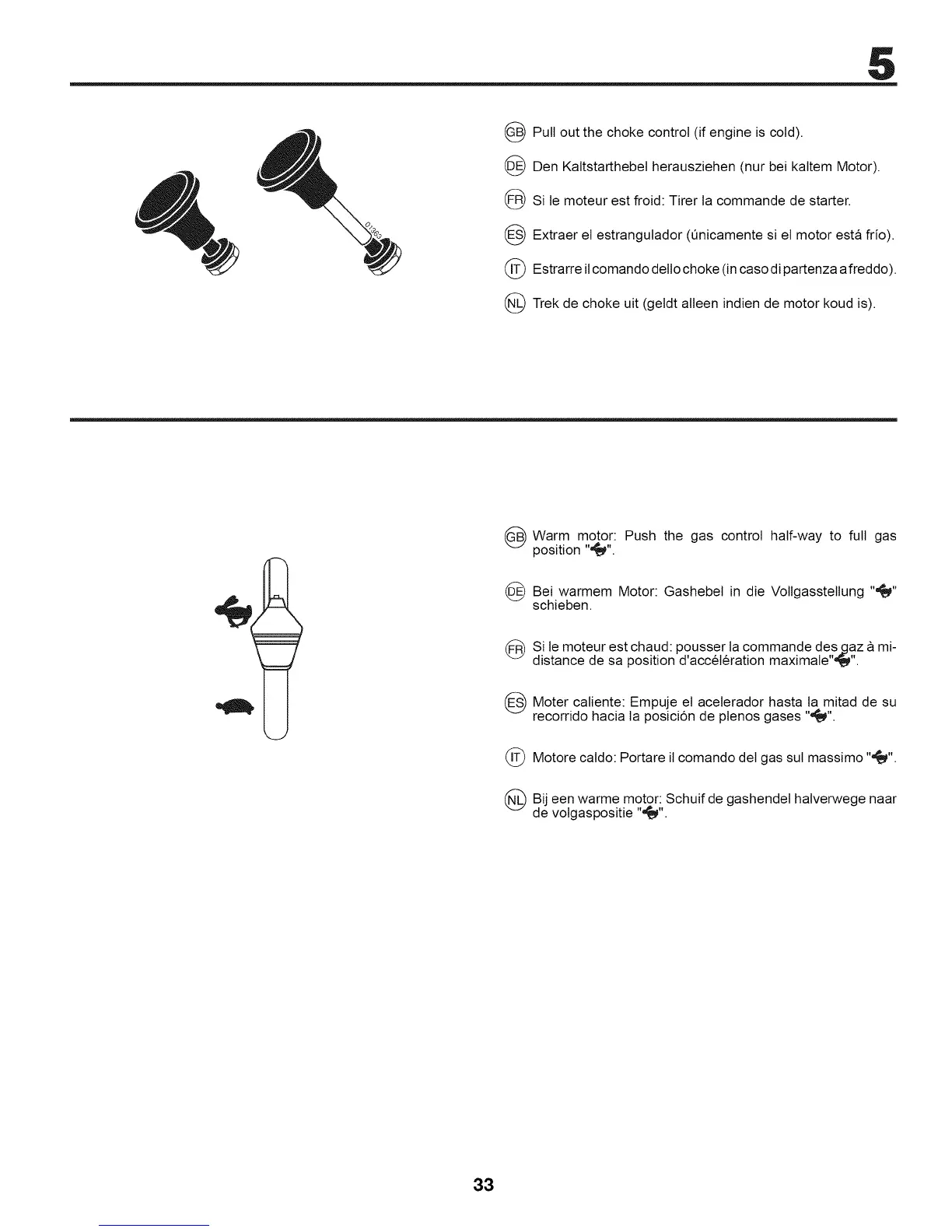 I_) Warm motor: Push the gas control half-way to full gas