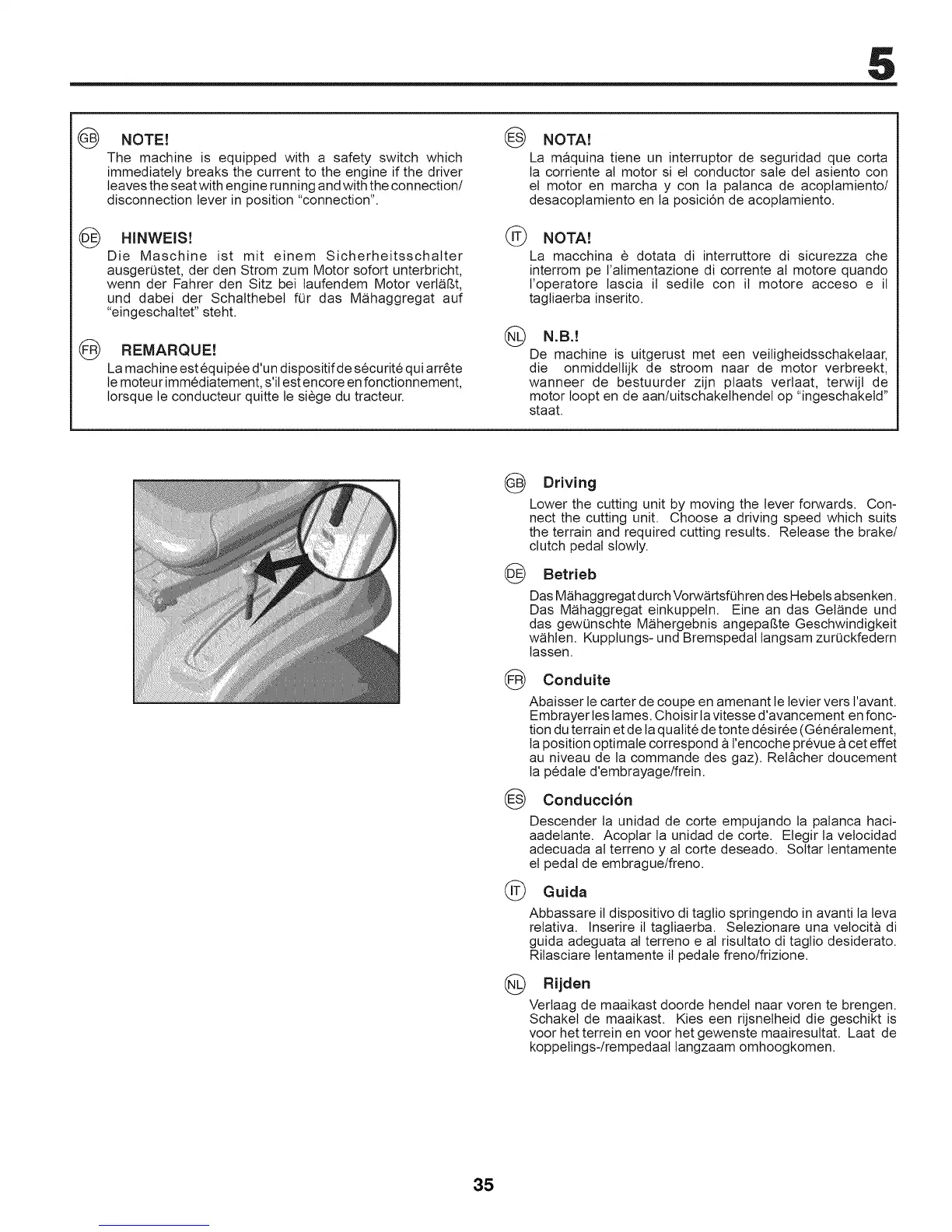 Embrayer les lames. Choisirla vitesse d'avancement en fonc-