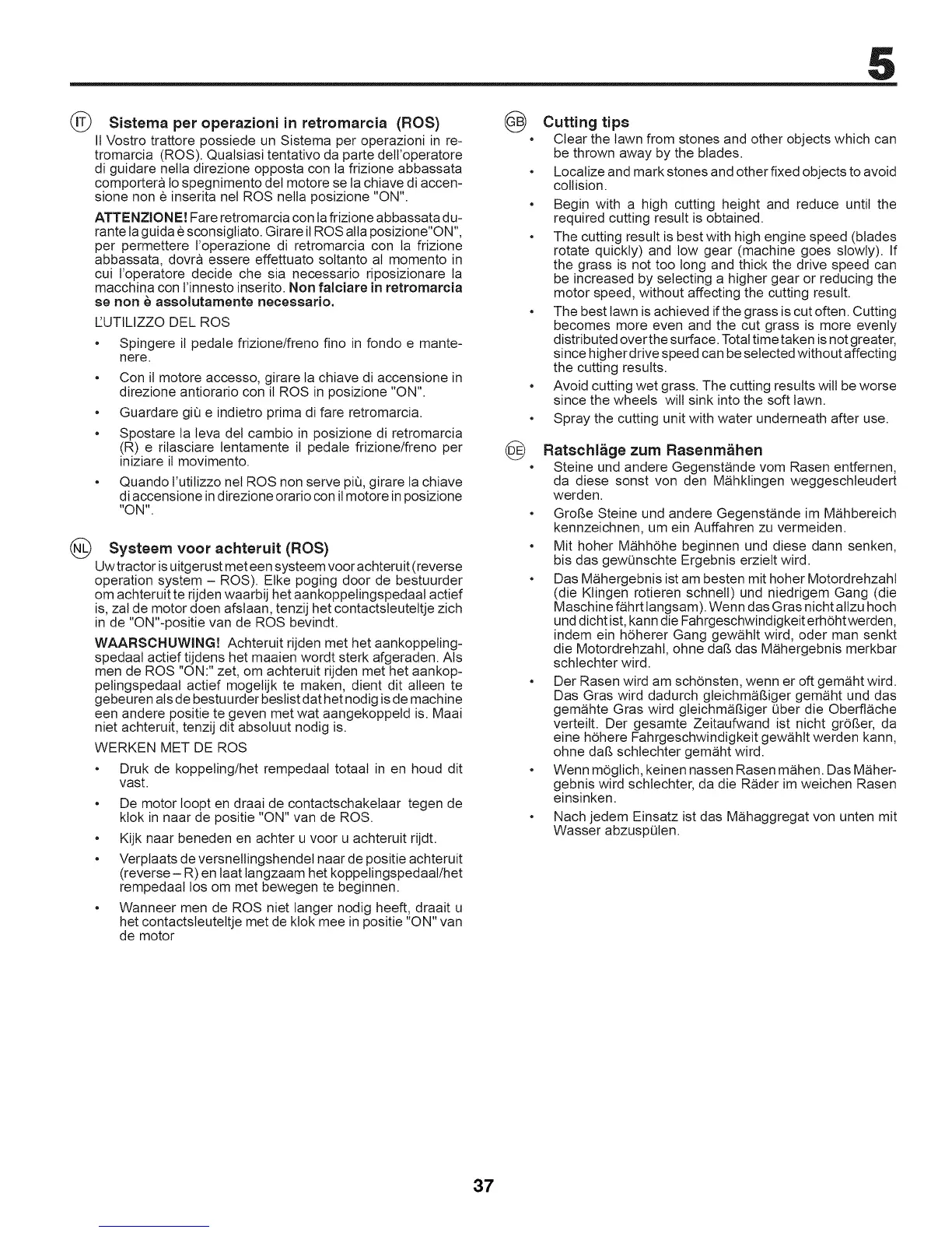 • Wenn mOglich, keinen nassen Rasen m_ihen. Das M_her-