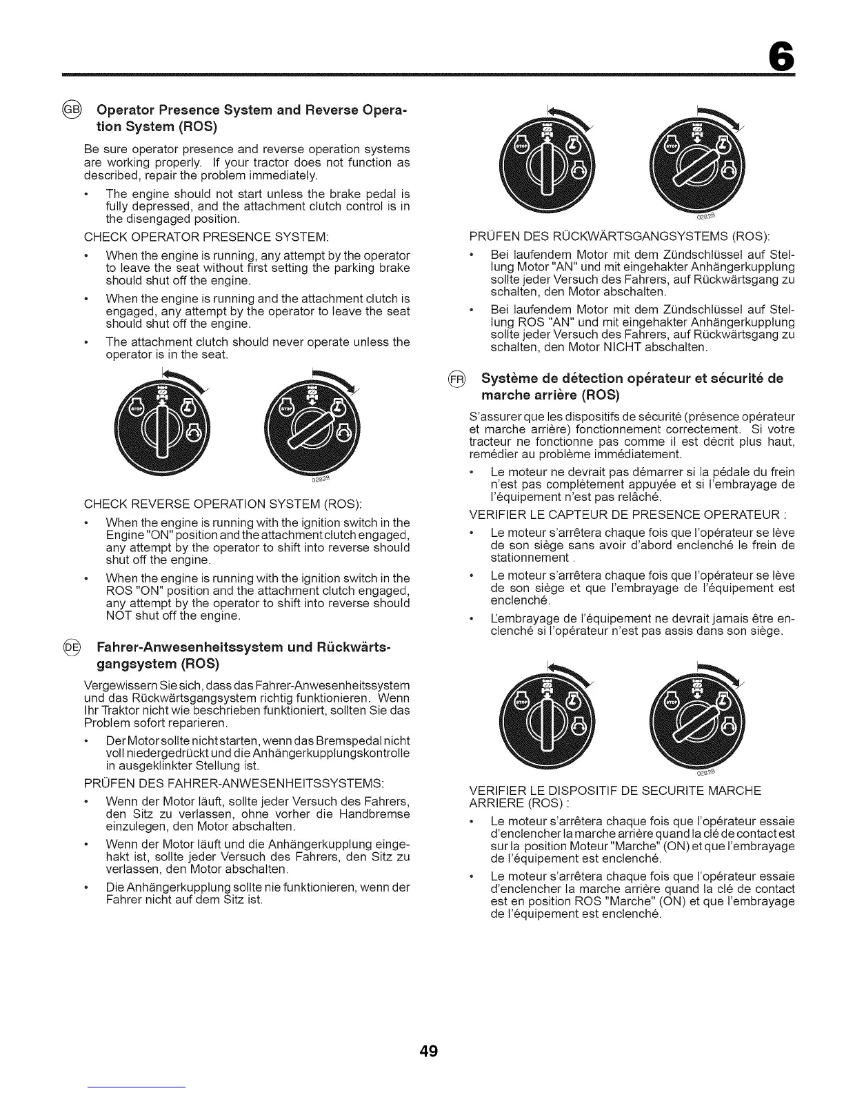 • Le moteur s'arr6tera chaque fois que l'operateur se leve