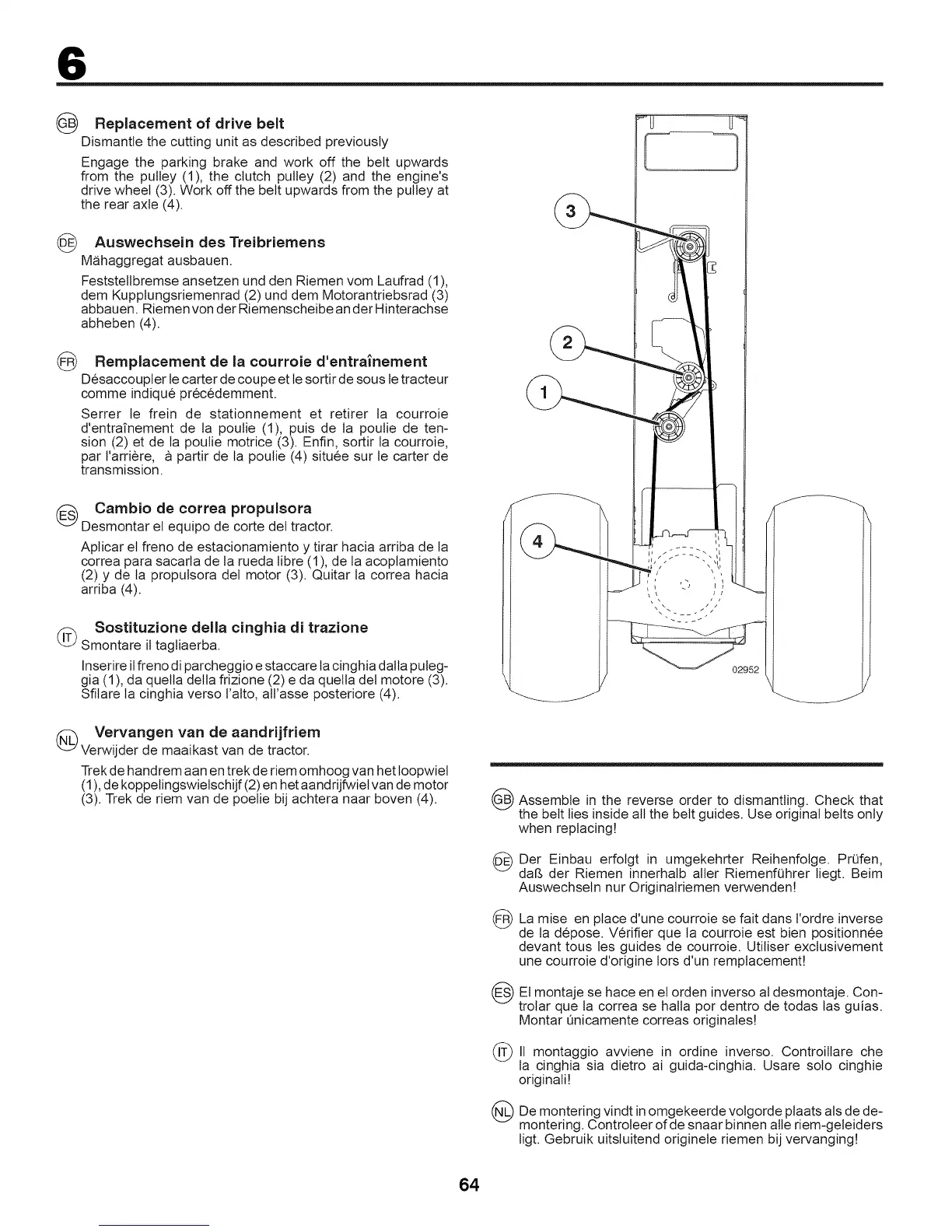 (2) y de la propulsora det motor (3). Quitar la correa hacia