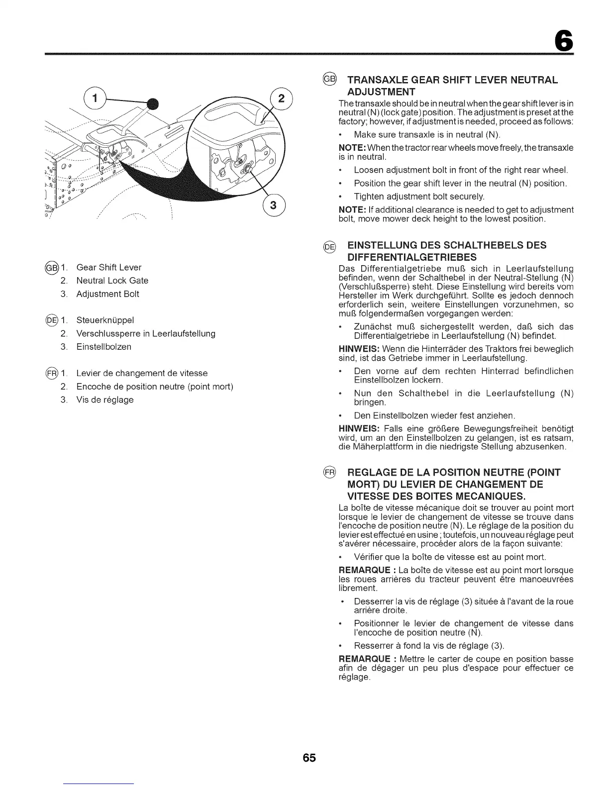 TRANSAXLE GEAR SHIFT LEVER NEUTRAL