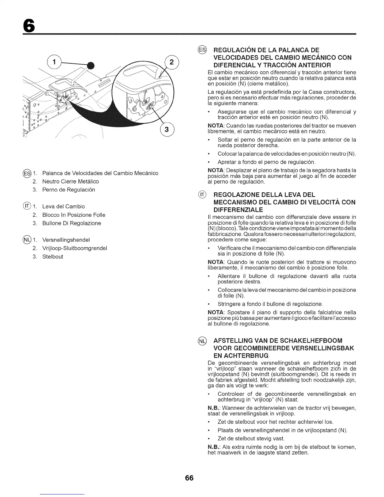 NOTA: Spostare it piano di supporto della falciatrice nella