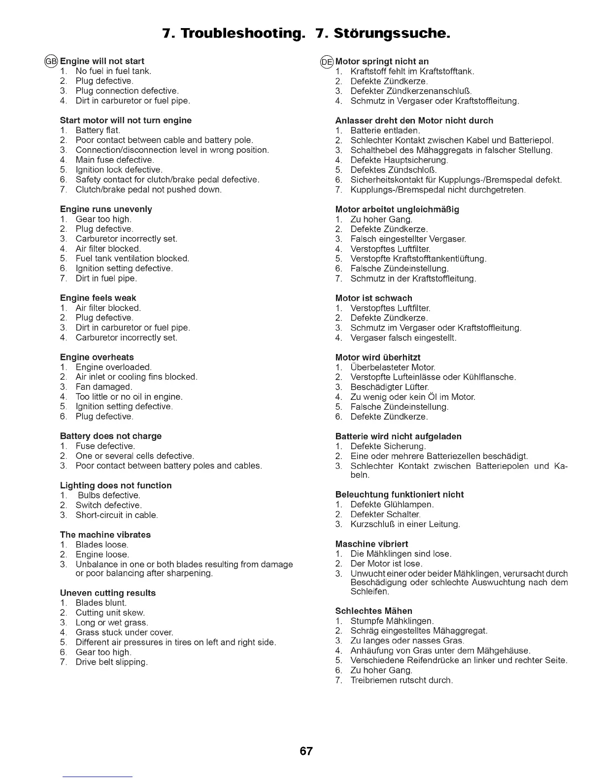 6. Sicherheitskontakt f0r Kupplungs-/Bremspedal defekt.