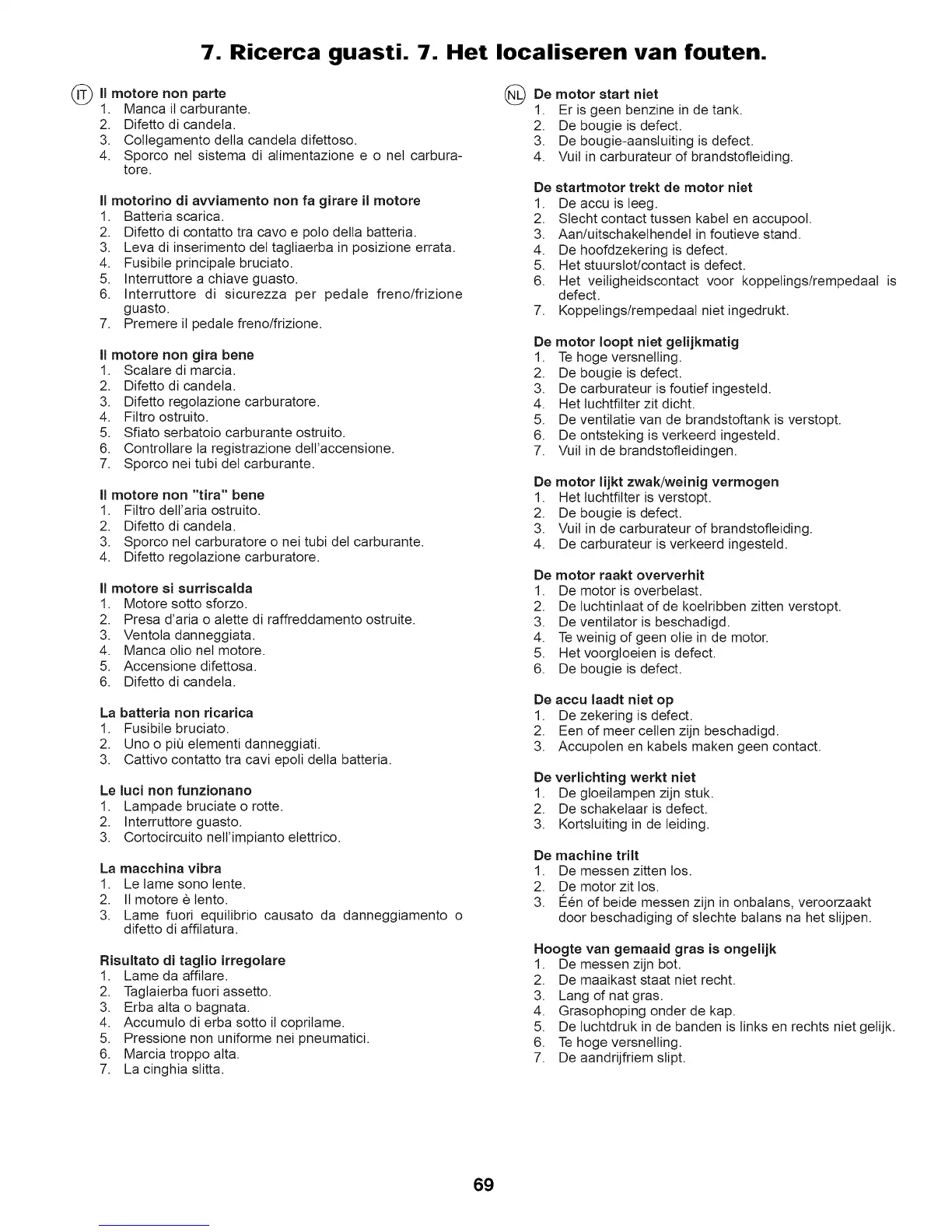 7. Ricerca guasti. 7. Het Iocaliseren van fouten.