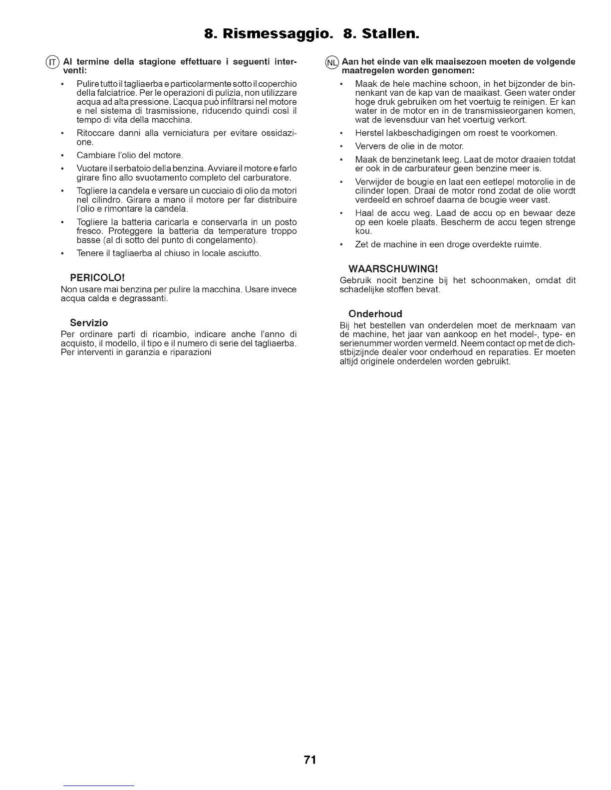 8. Rismessaggio. 8. Stallen.