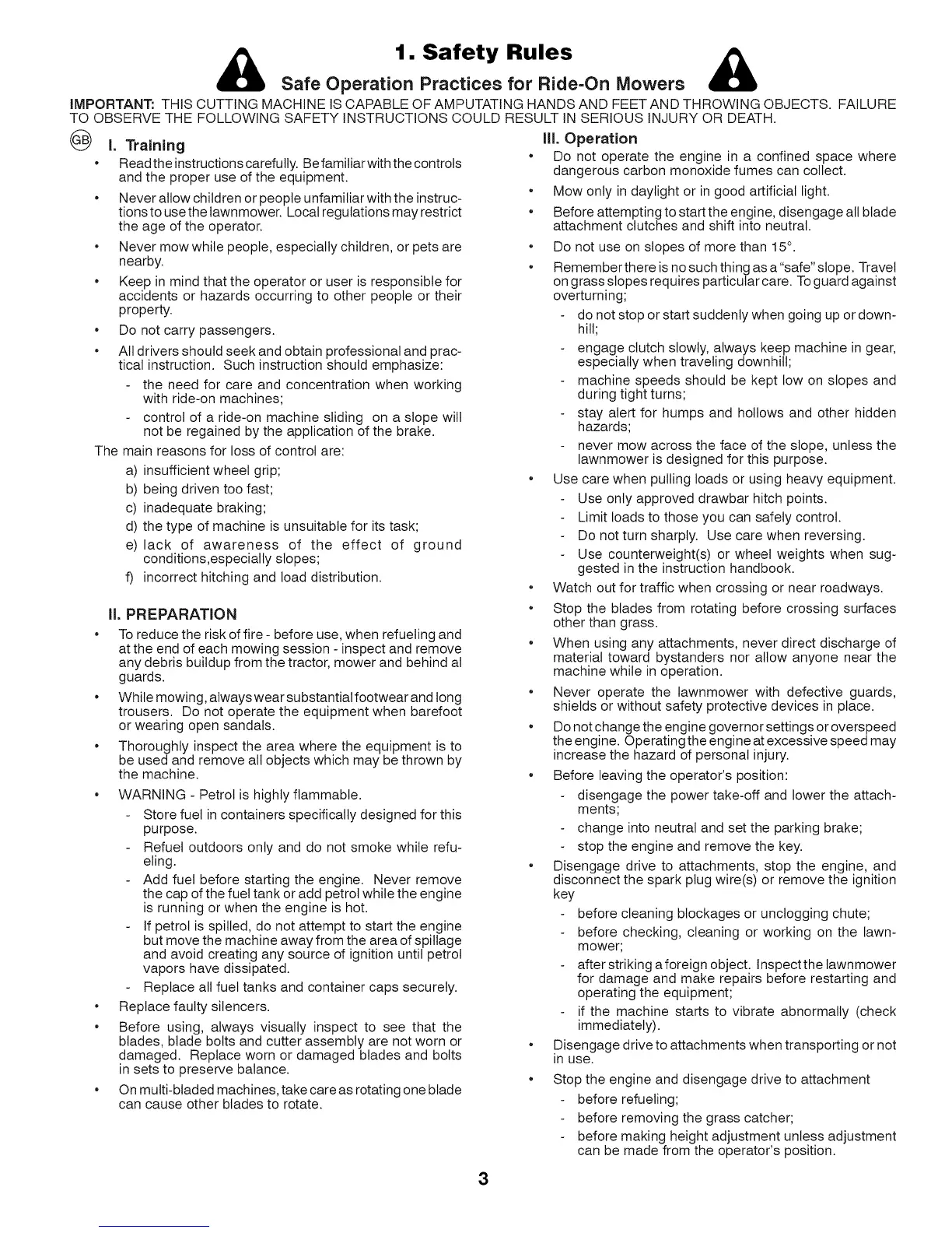 Safe Operation Practices for Ride=On Mowers
