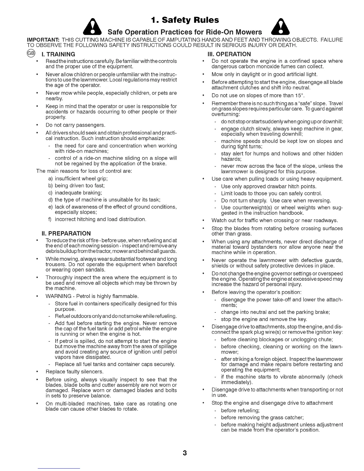 Safe Operation Practices for Ride=On Mowers