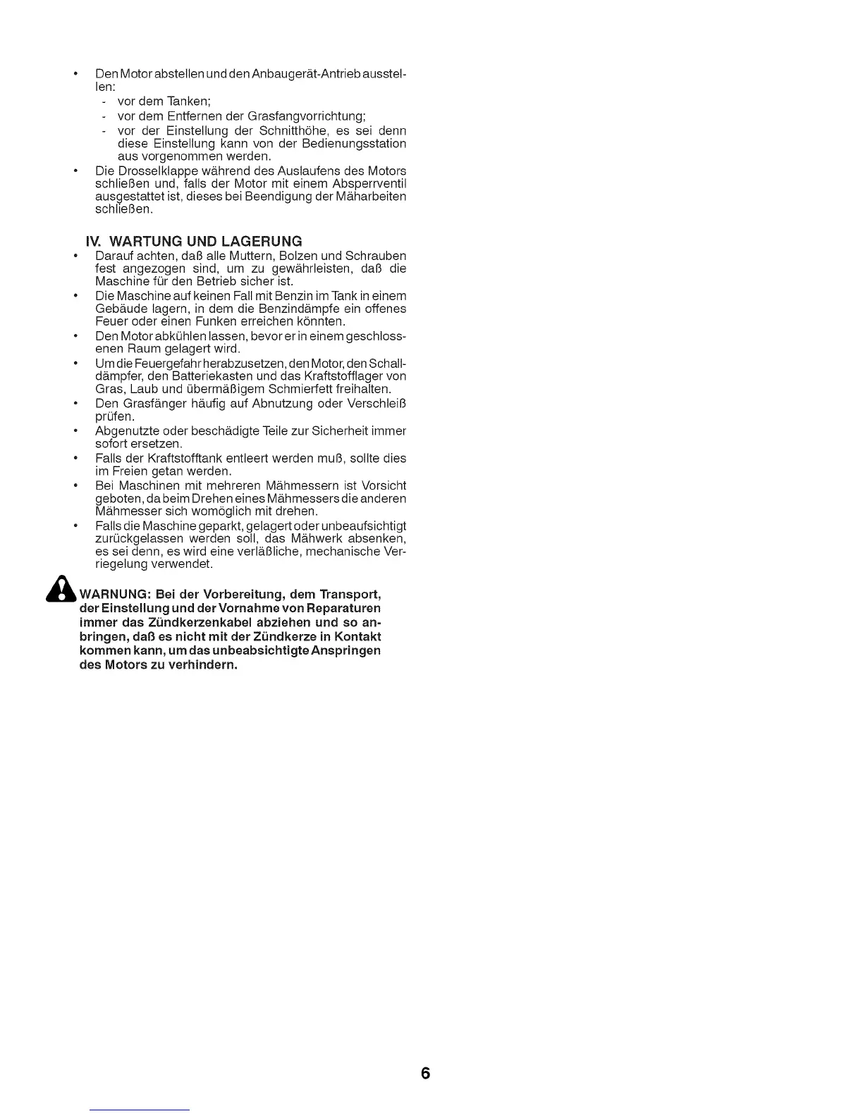 iV. WARTUNG UND LAGERUNG