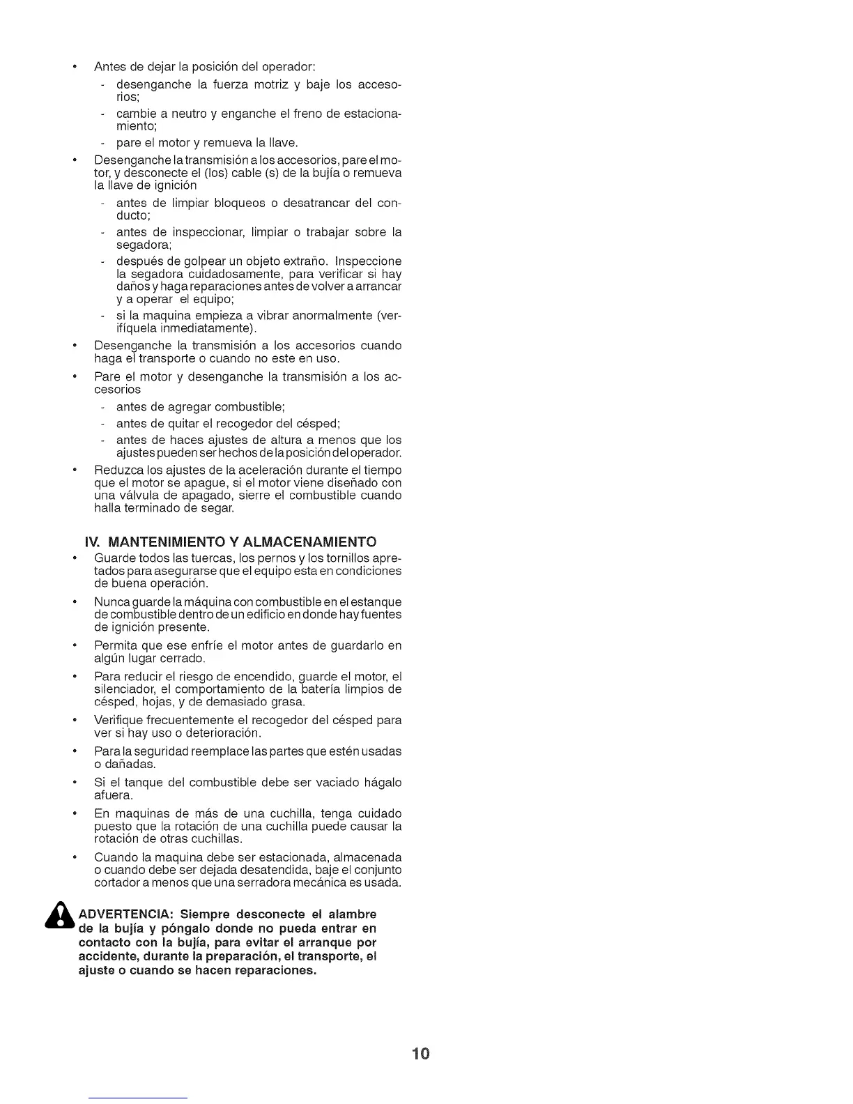 IV. MANTENIMIENTO Y ALMACENAMIENTO