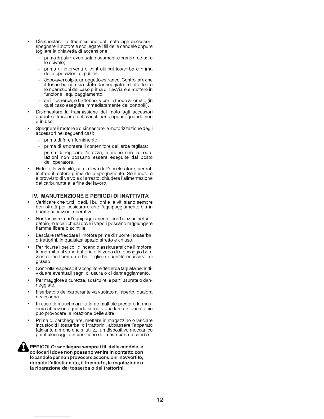i_ll PERICOLO: scollegare sempre i fili delle candele, e