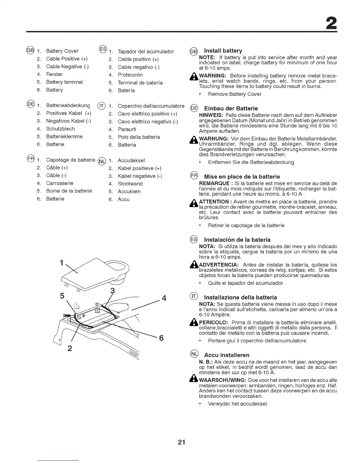 1. Batterieabdeckung @ 1. Coperchio delliaccumulatore