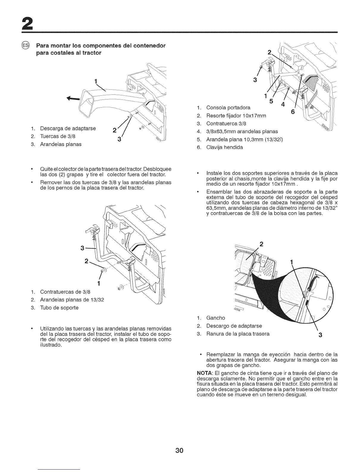 abertura tracera del tractor. Asegurar la manga con las