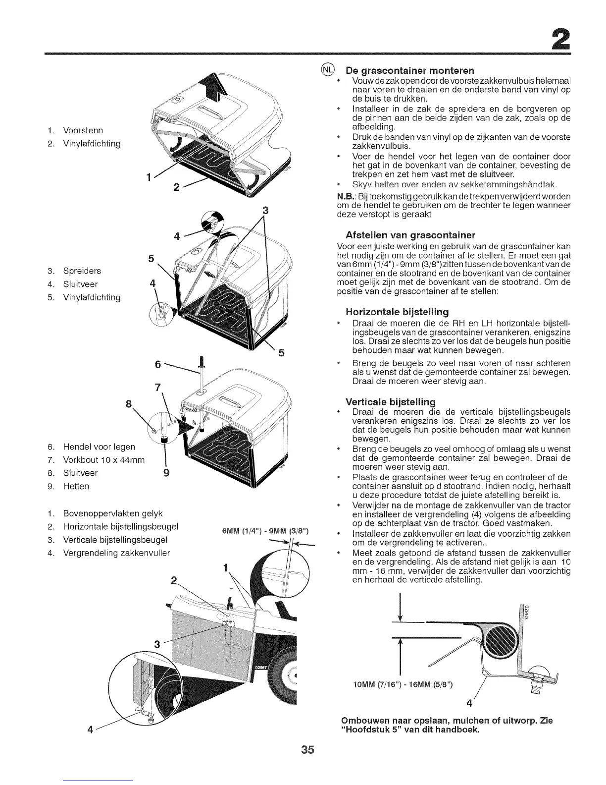 Ombouwen naar opslaan, mulchen of uitworp. Zie