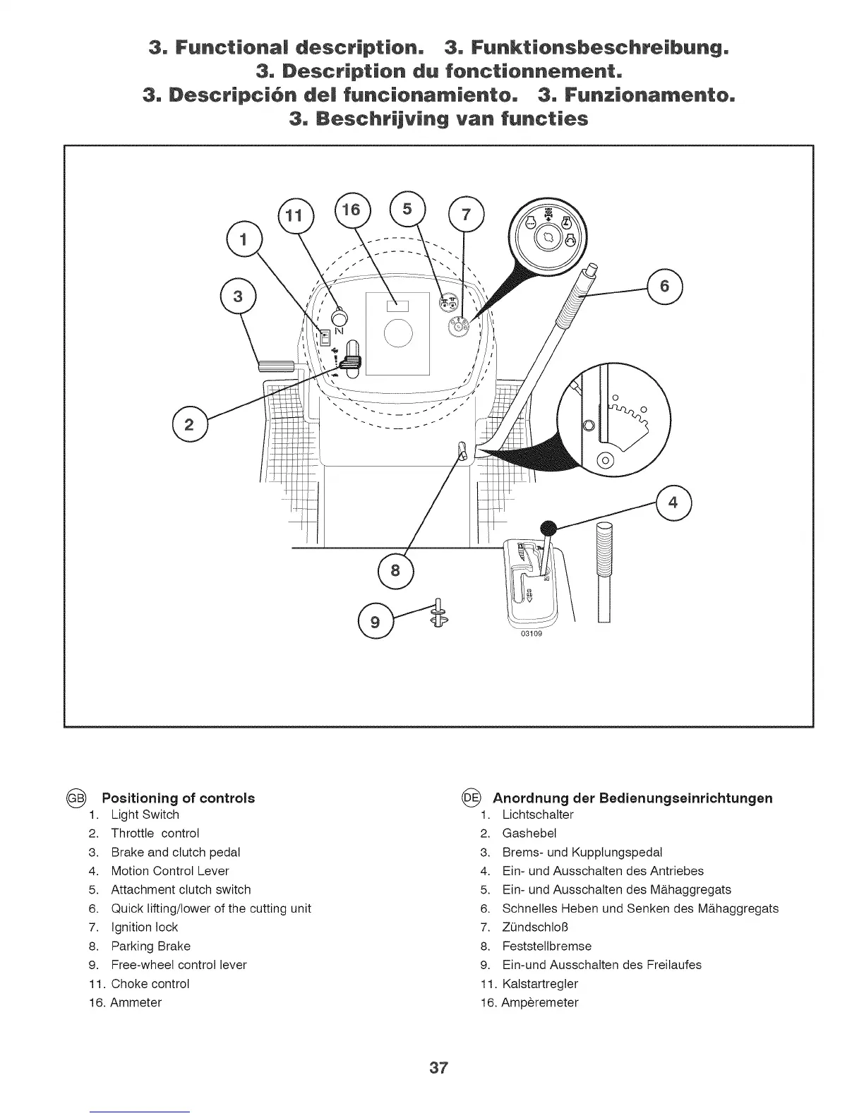 6. Quick lifting/lower of the cutting unit 6.