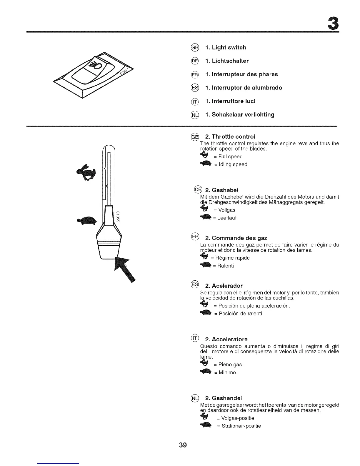 Met de gasregetaar wordt het toerental van de motor geregetd