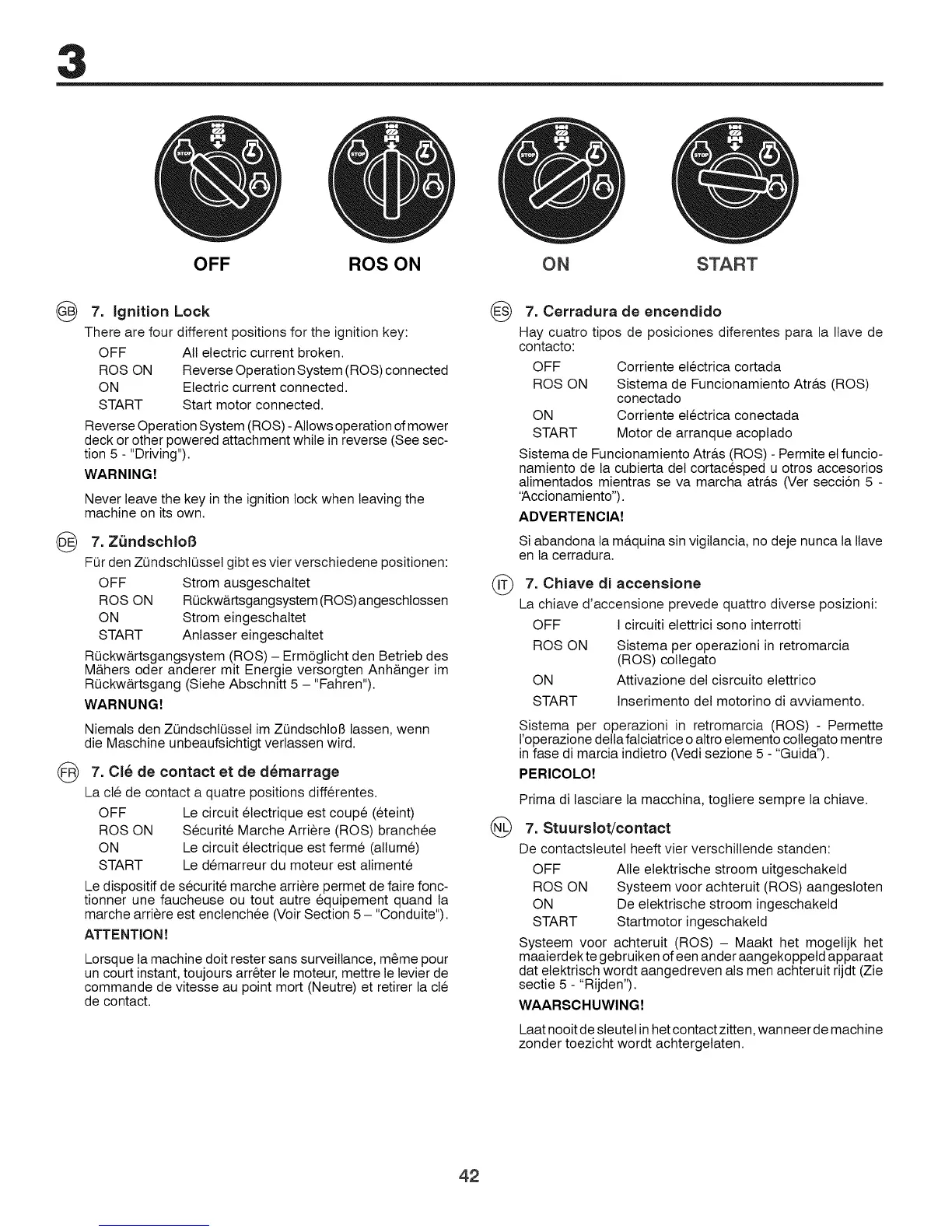 ROckw&rtsgang (Siehe Abschnitt 5 - "Fahren").