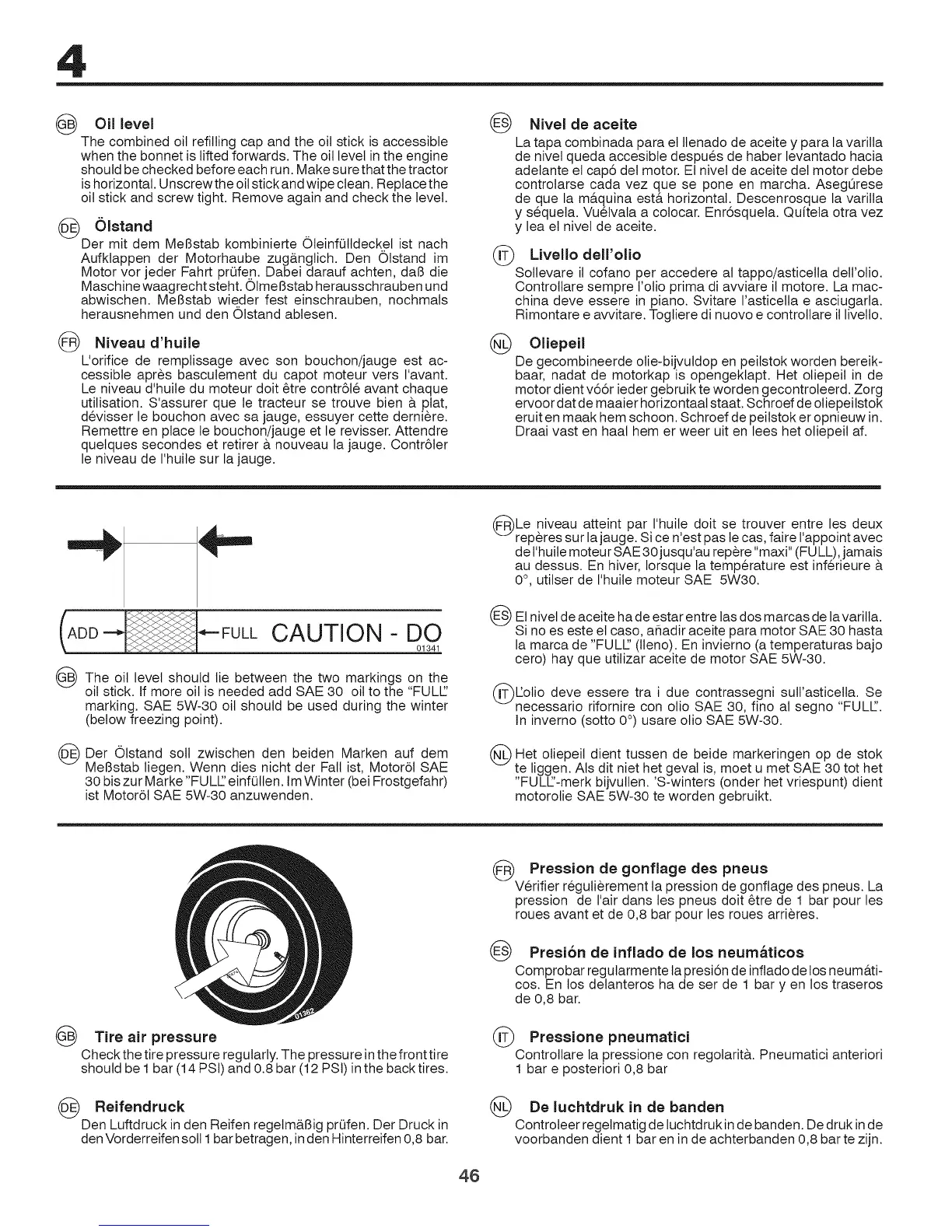 de t'huile moteur SAE 30 jusqu'au repere "maxi" (FULL), jamais