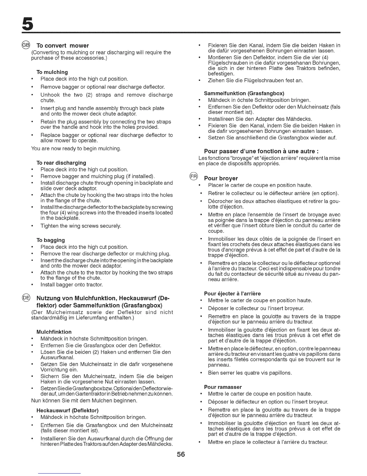 Nutzung von Mulchfunktion, Heckauswurf (De-