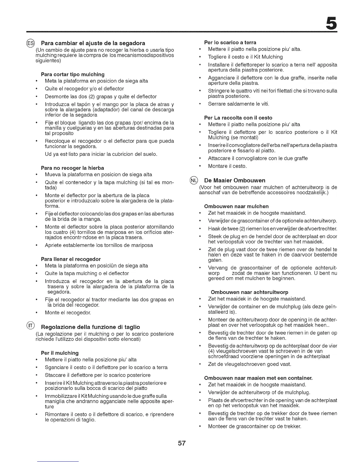 (Voor het ombouwen naar mulchen of achteruitworp is de