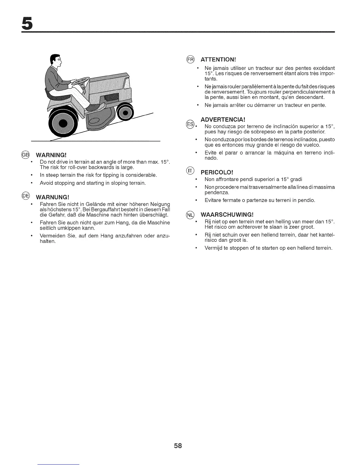 No conduzca por terreno de inclinaci6n superior a 15°,