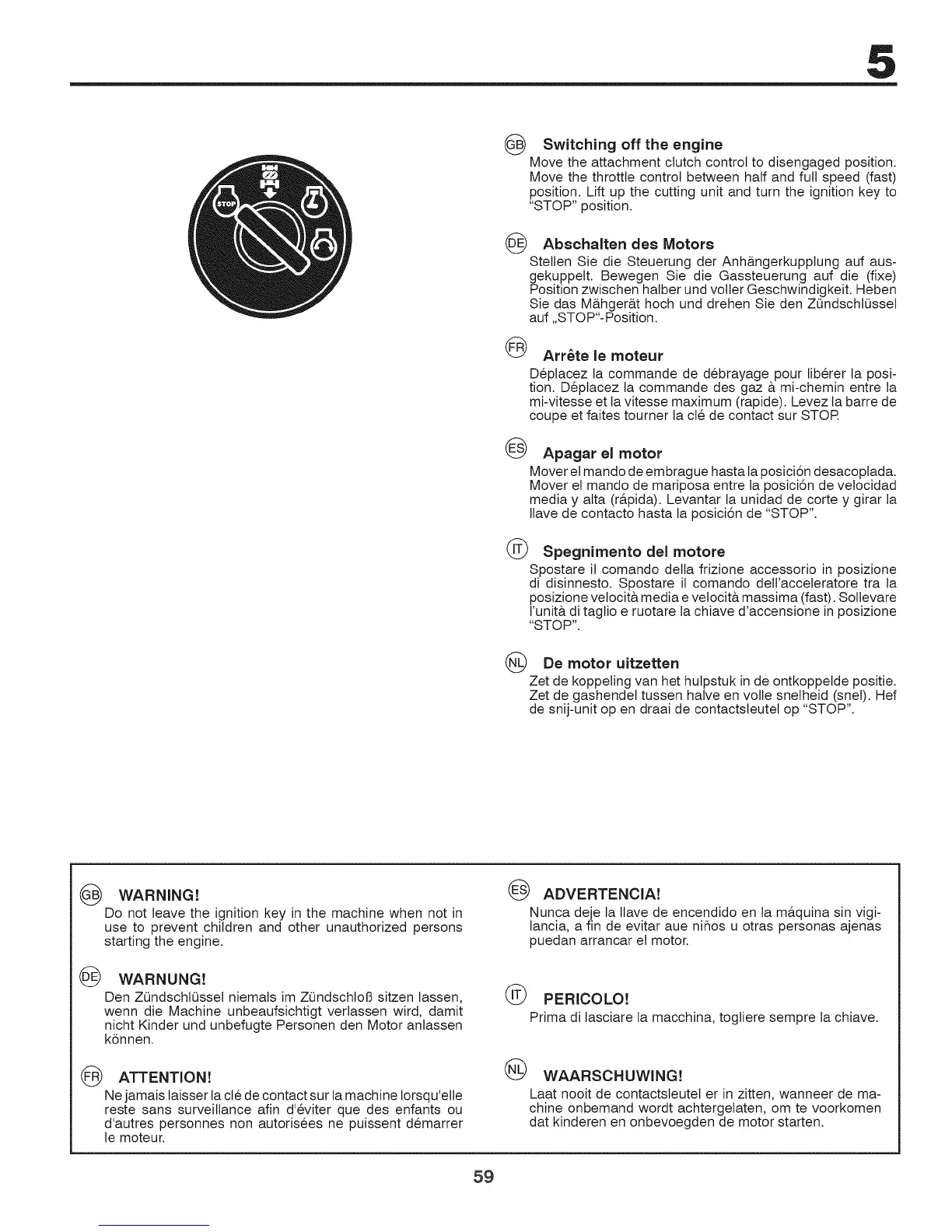 Ne jamais laisser la cle de contact sur la machine lorsqu'etle