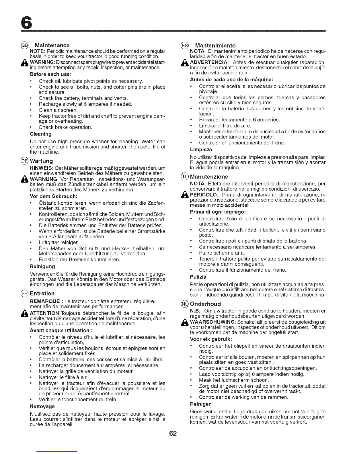 N.B.: Om uw tractor in goede conditie te houden, moeten er