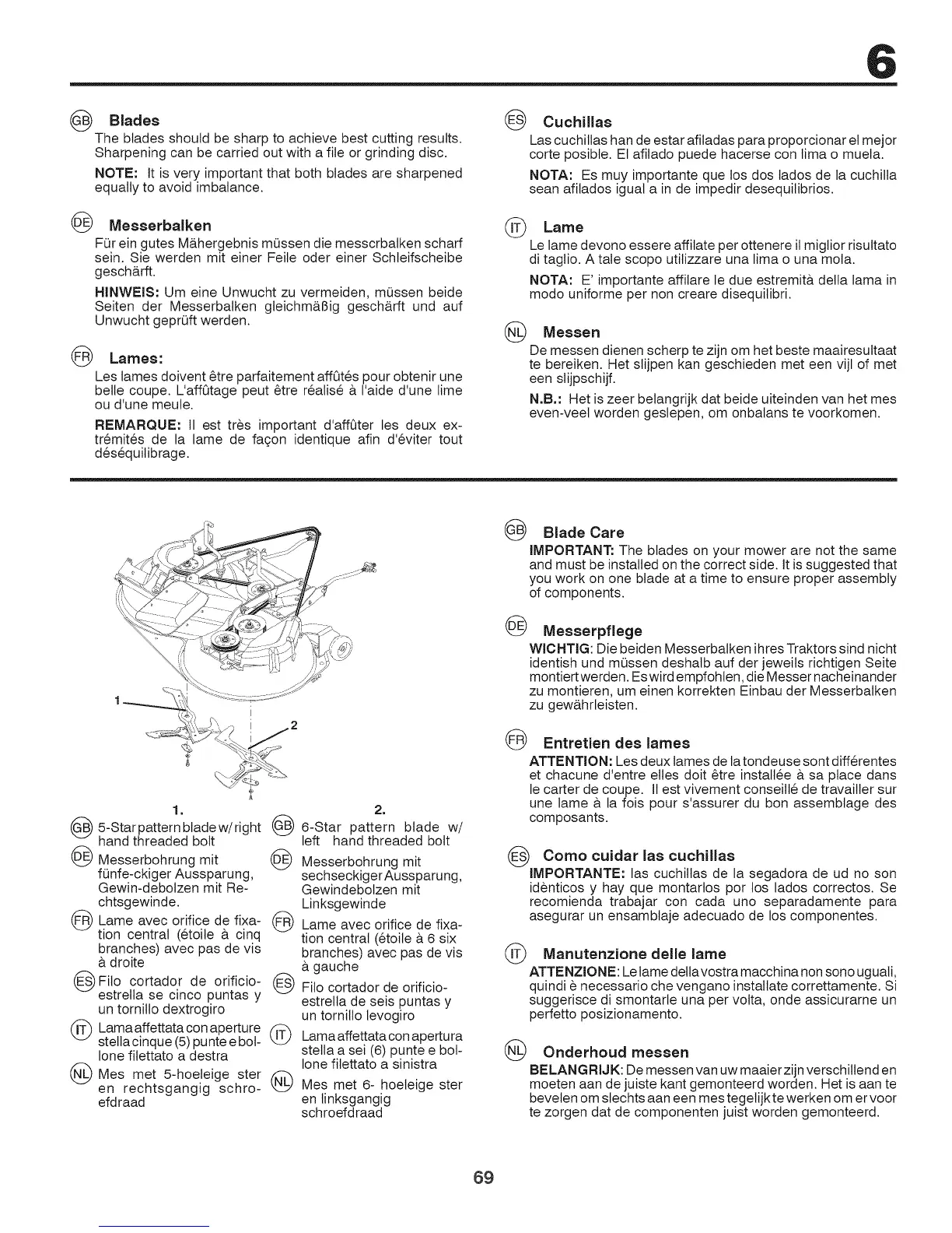 BELANGRIJK: De messen van uw maaier zijn verschillend en