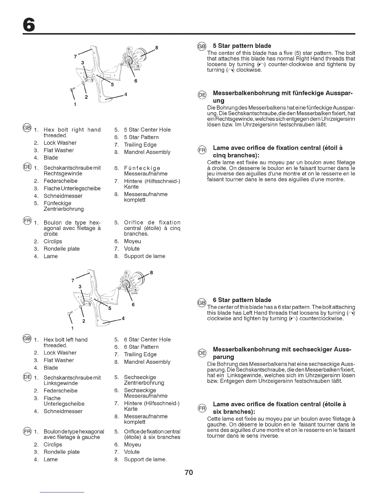 Cette lame est fixee au moyeu par un boulon avec filetage &