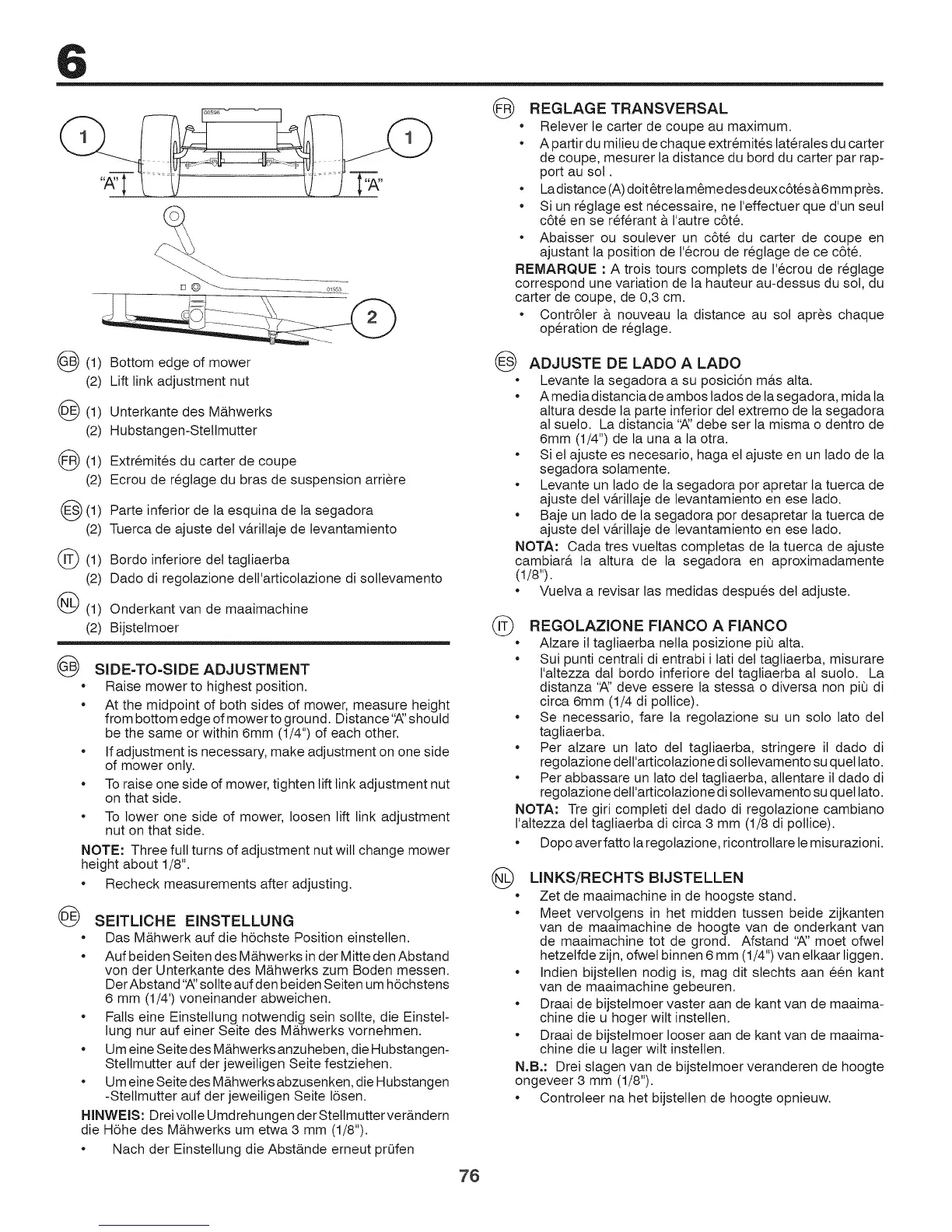 * Per abbassare un lato del tagliaerba, altentare it dado di