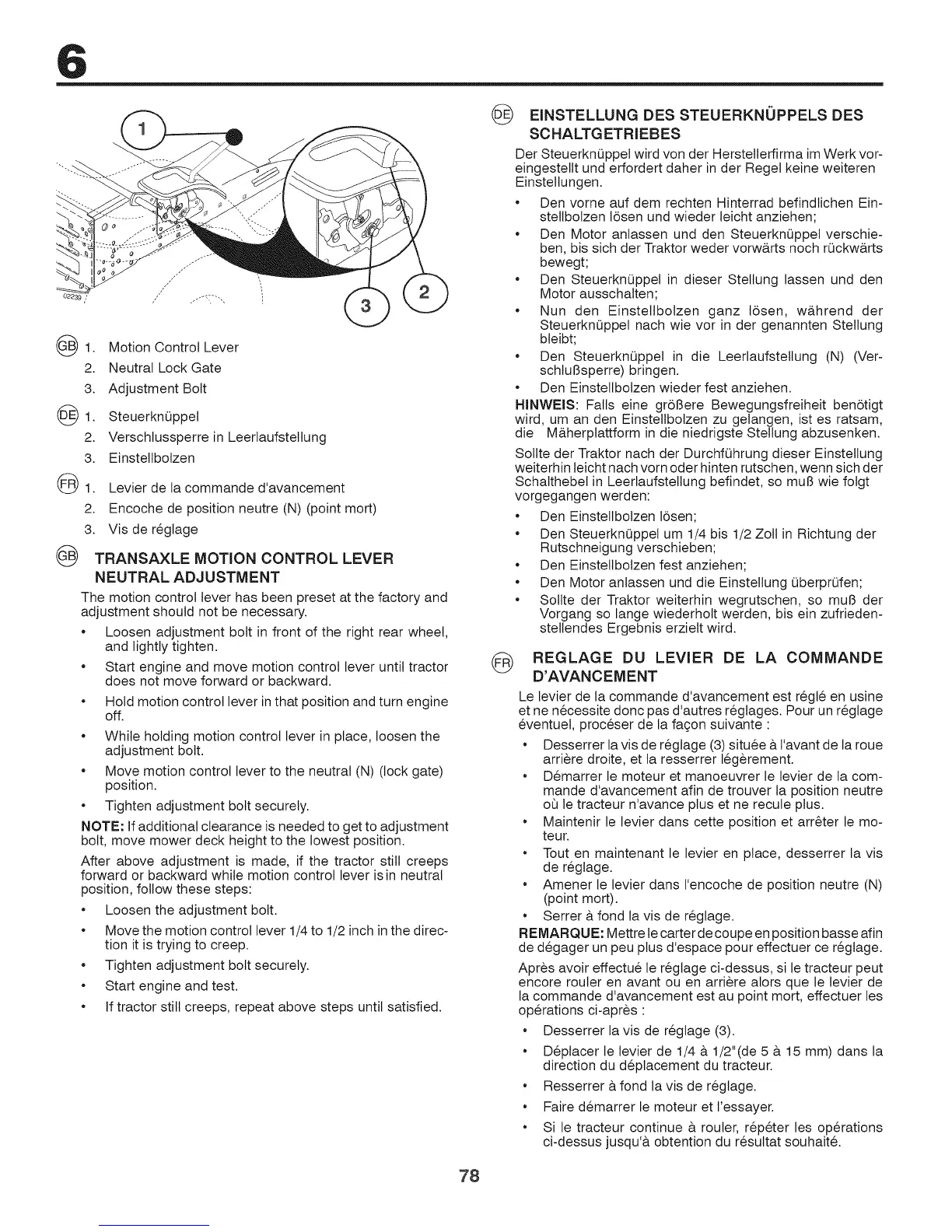 * Move the motion control lever 1/4 to 1/2 inch in the direc-
