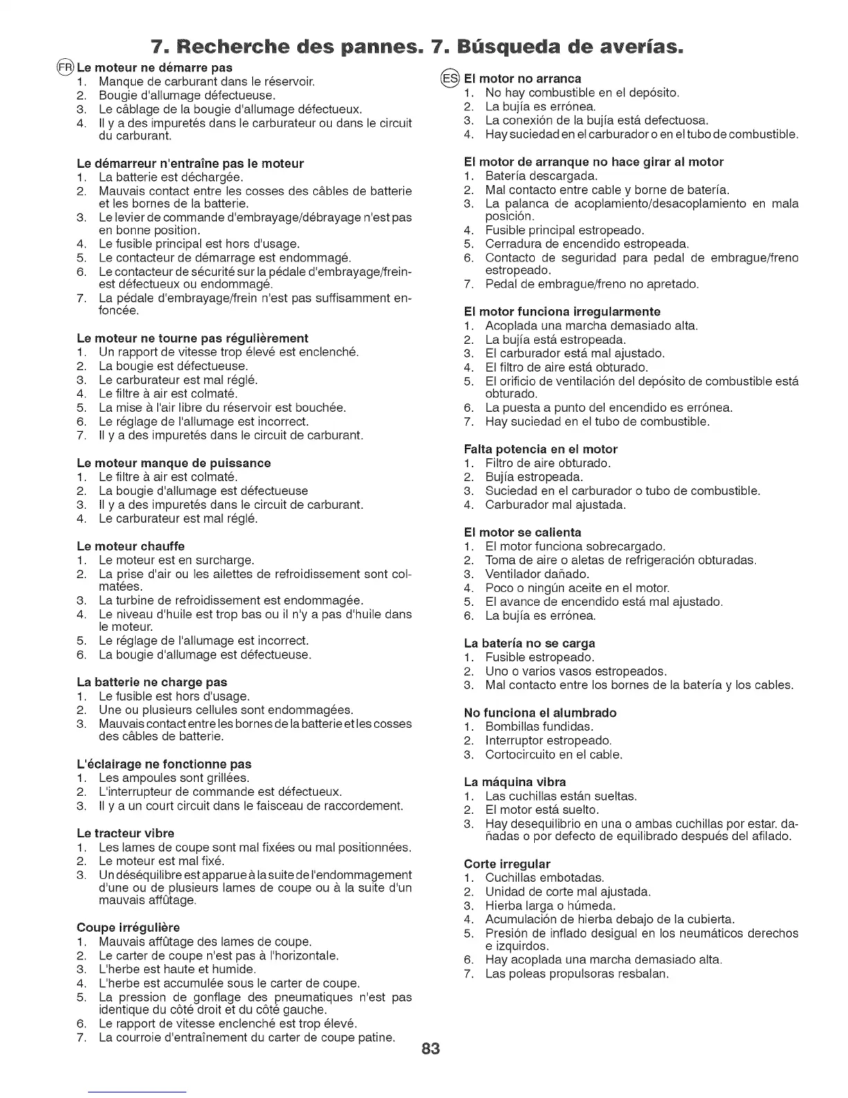 7. La courroie d'entrafnement du carter de coupe patine.