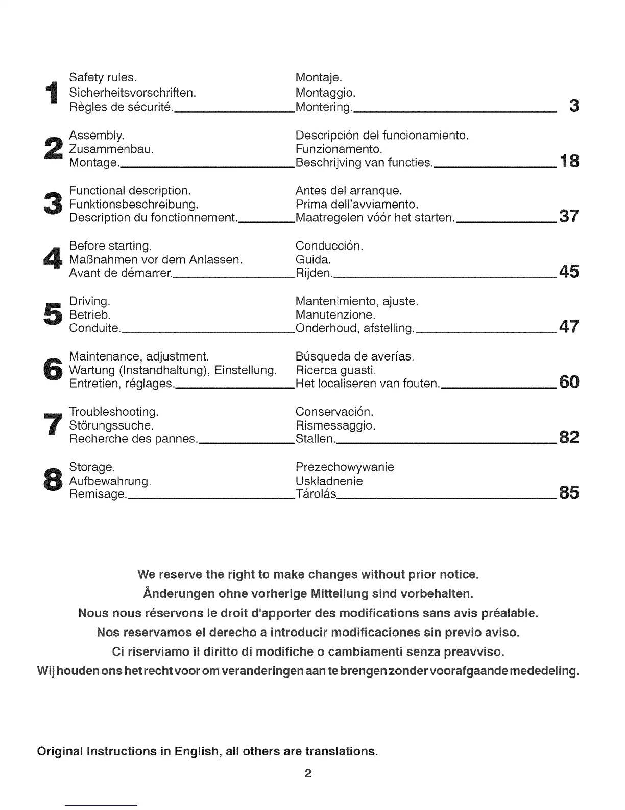Original instructions in English, all others are translations.